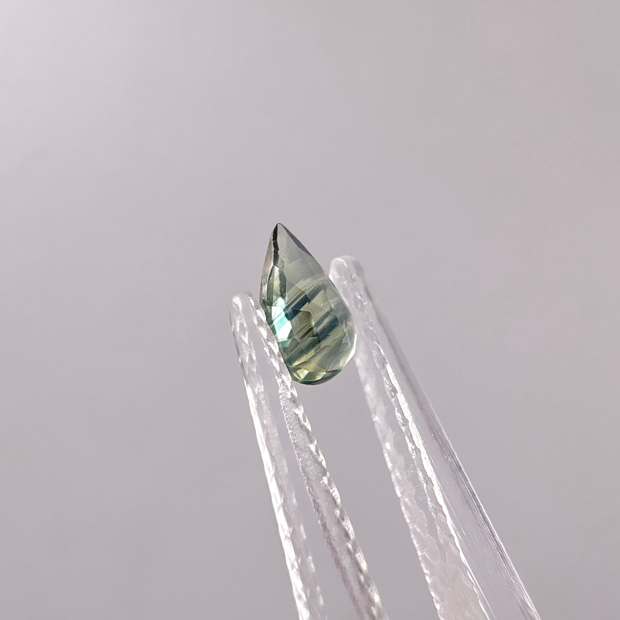ラベンダークォーツは透明感があって非常に明るく輝きます。ティールカラーのサファイアにはカラーバンドがススっと入っています。