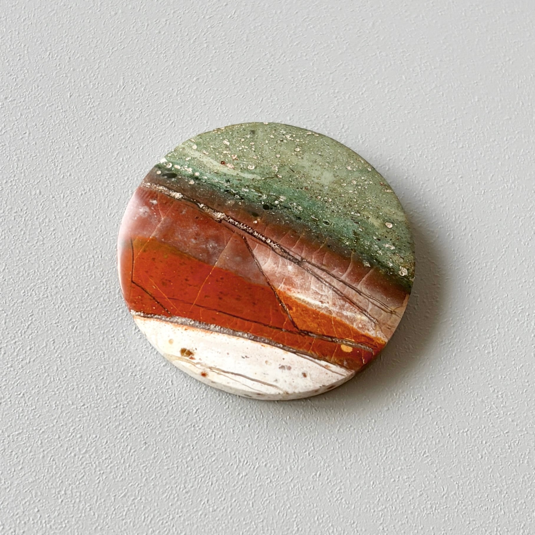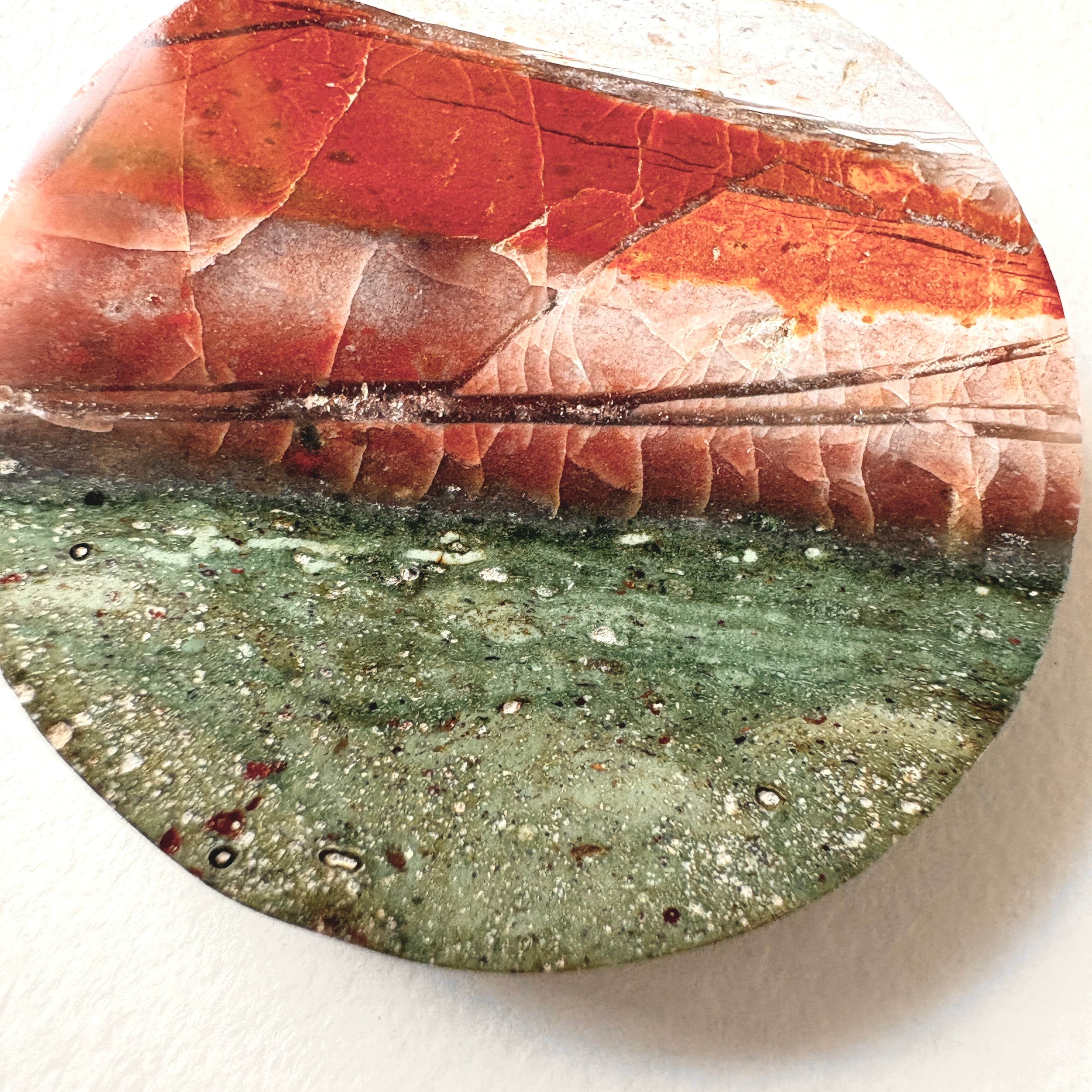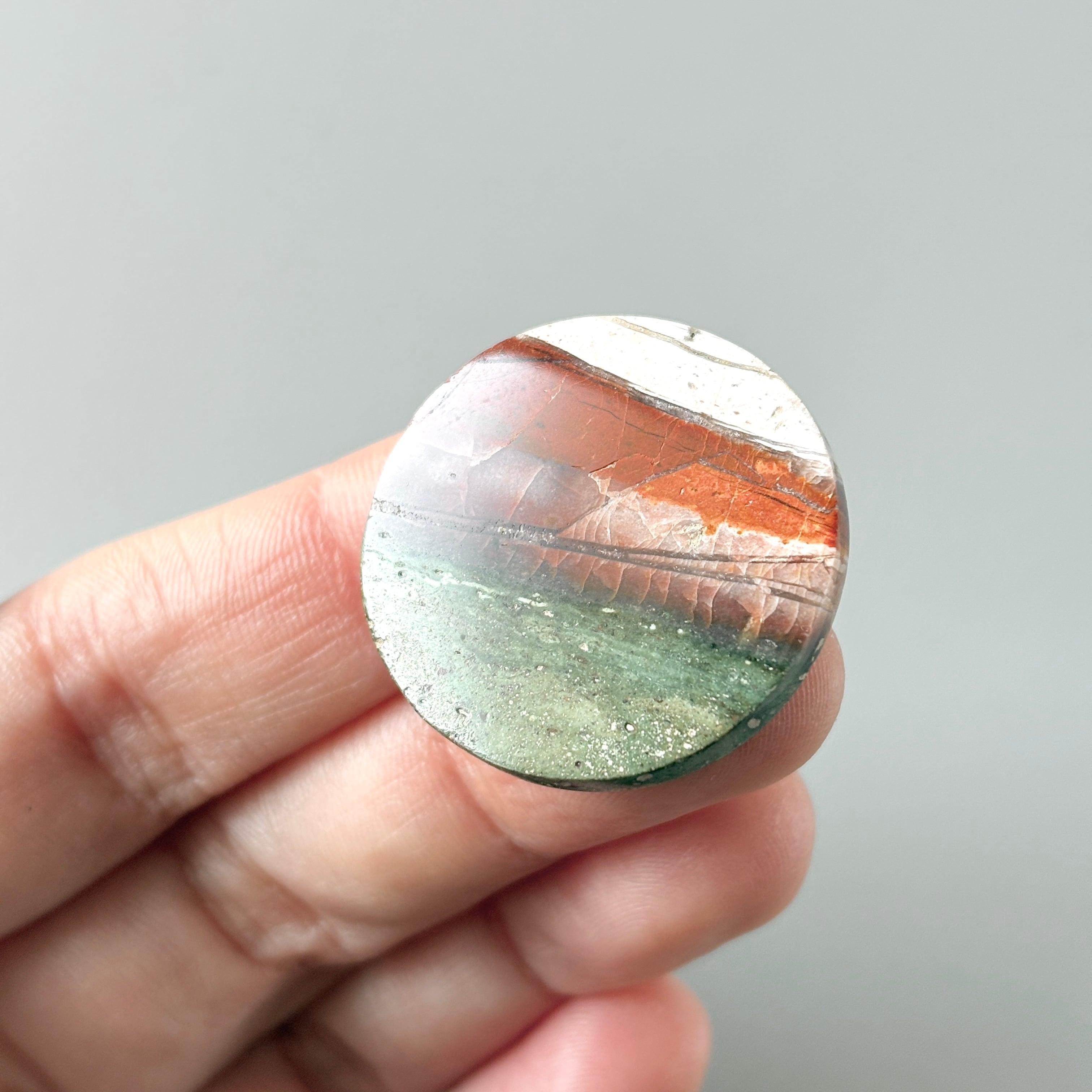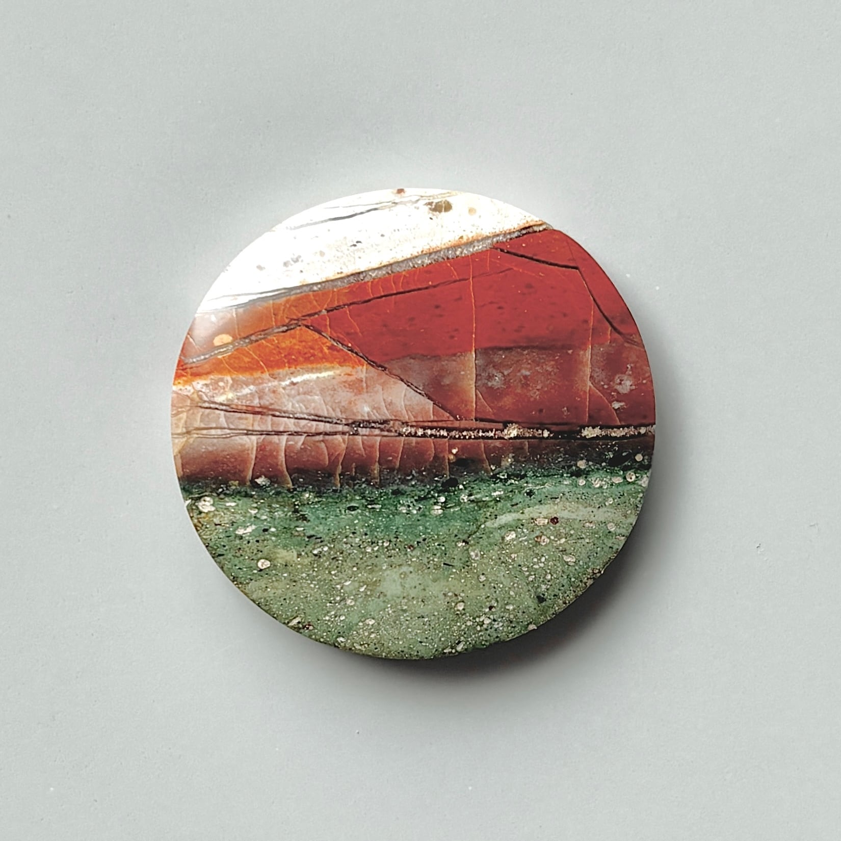 長い年月をかけてオパール化したペトリファイドウッド (植物の化石) です。風景画のようなものを選びました。