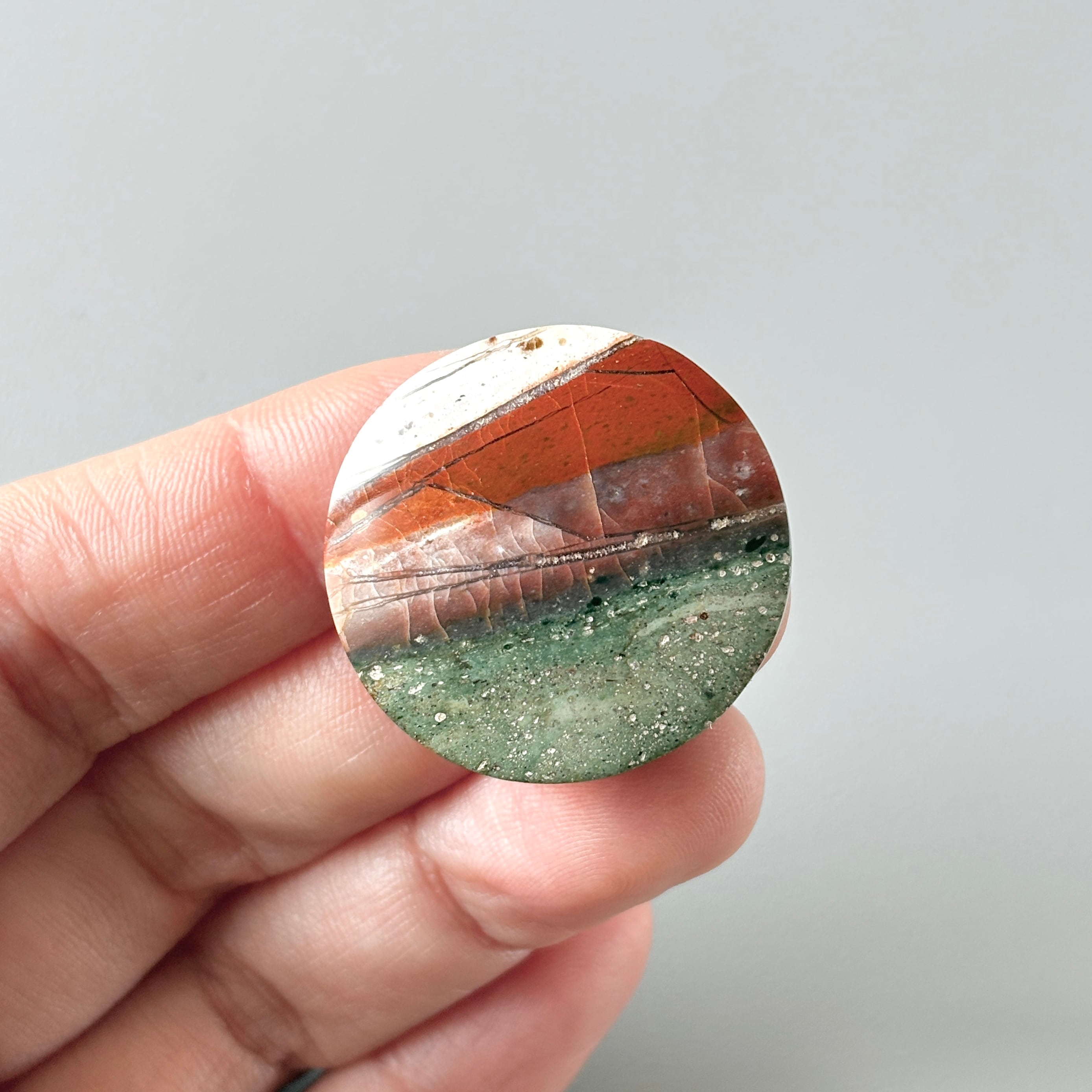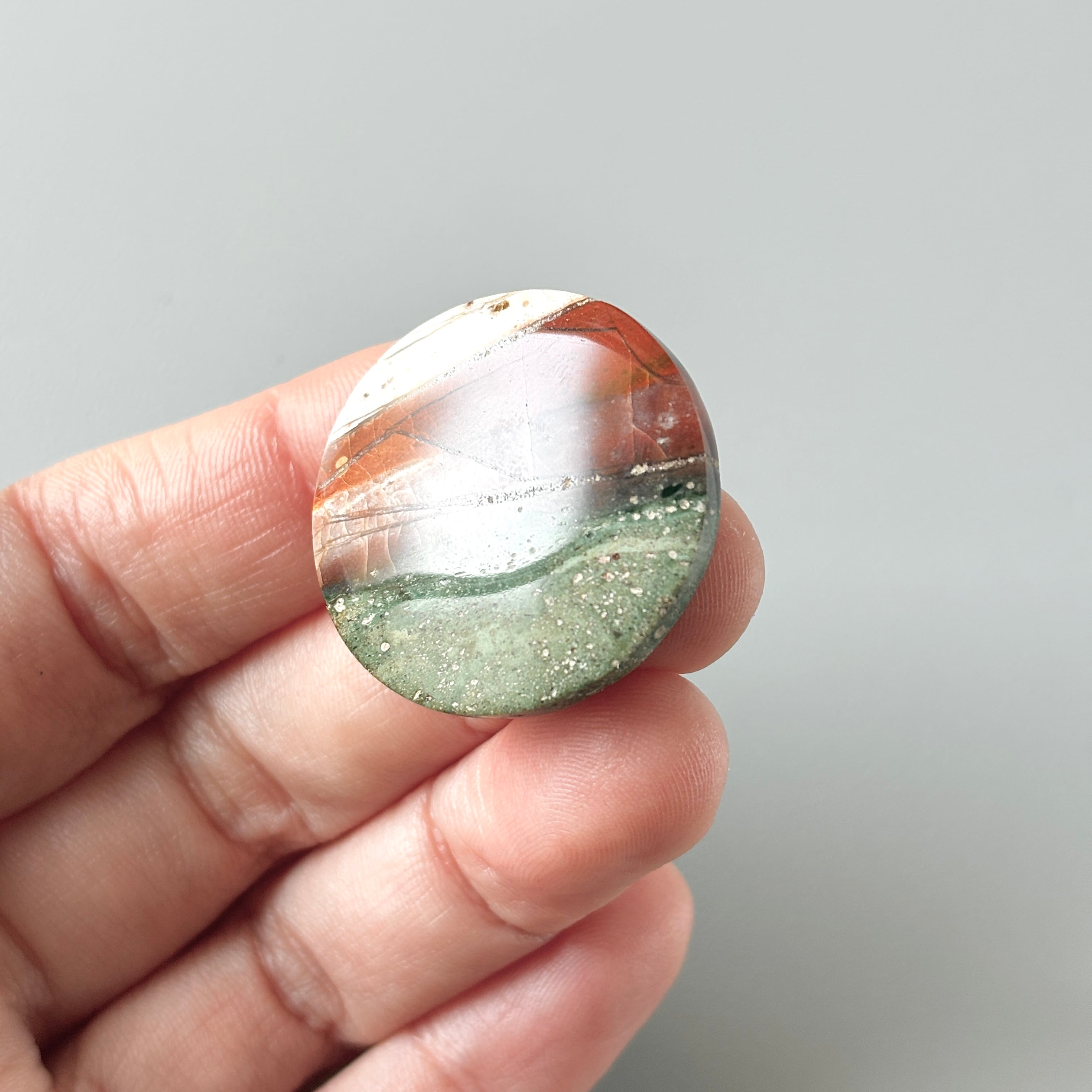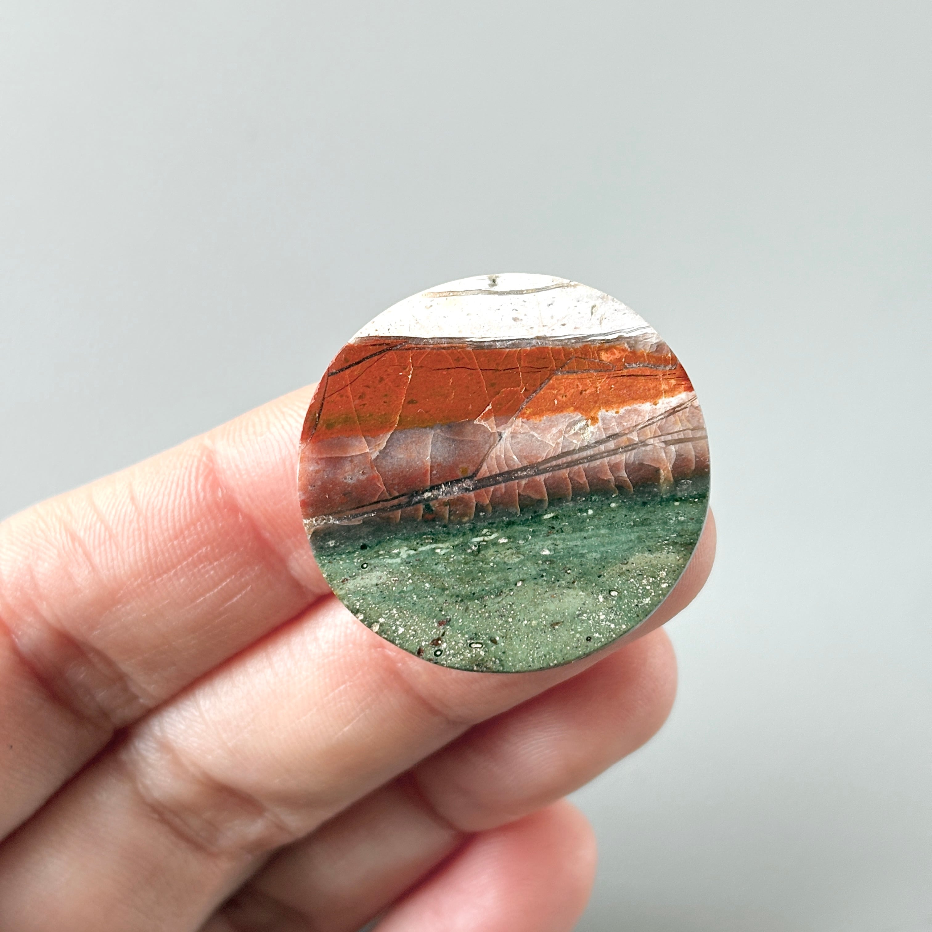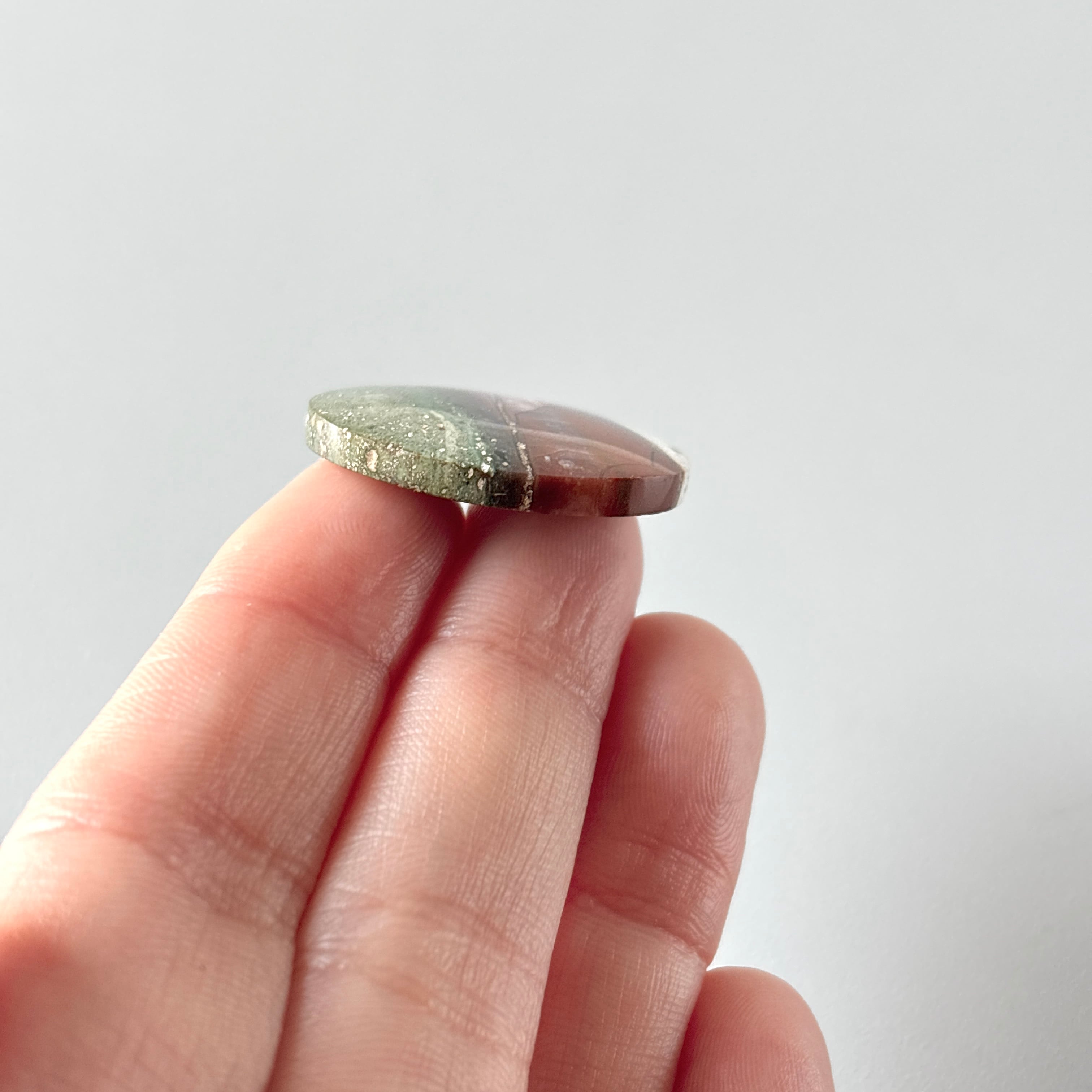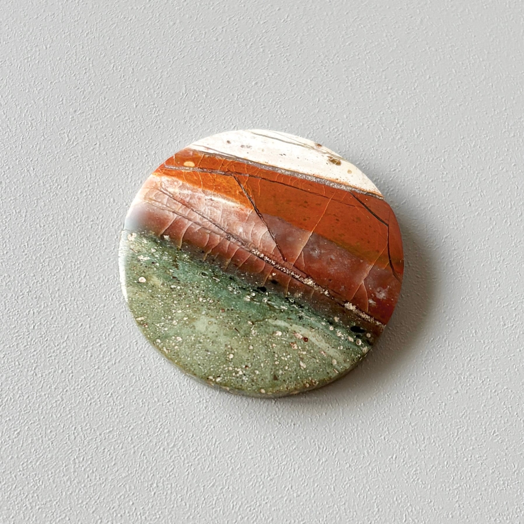 長い年月をかけてオパール化したペトリファイドウッド (植物の化石) です。風景画のようなものを選びました。