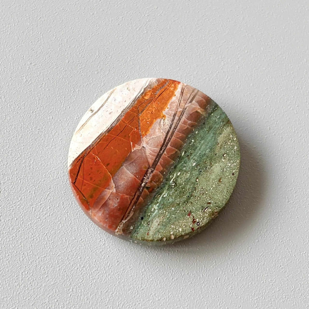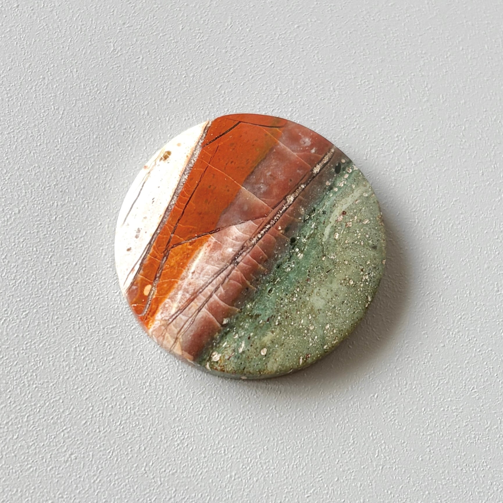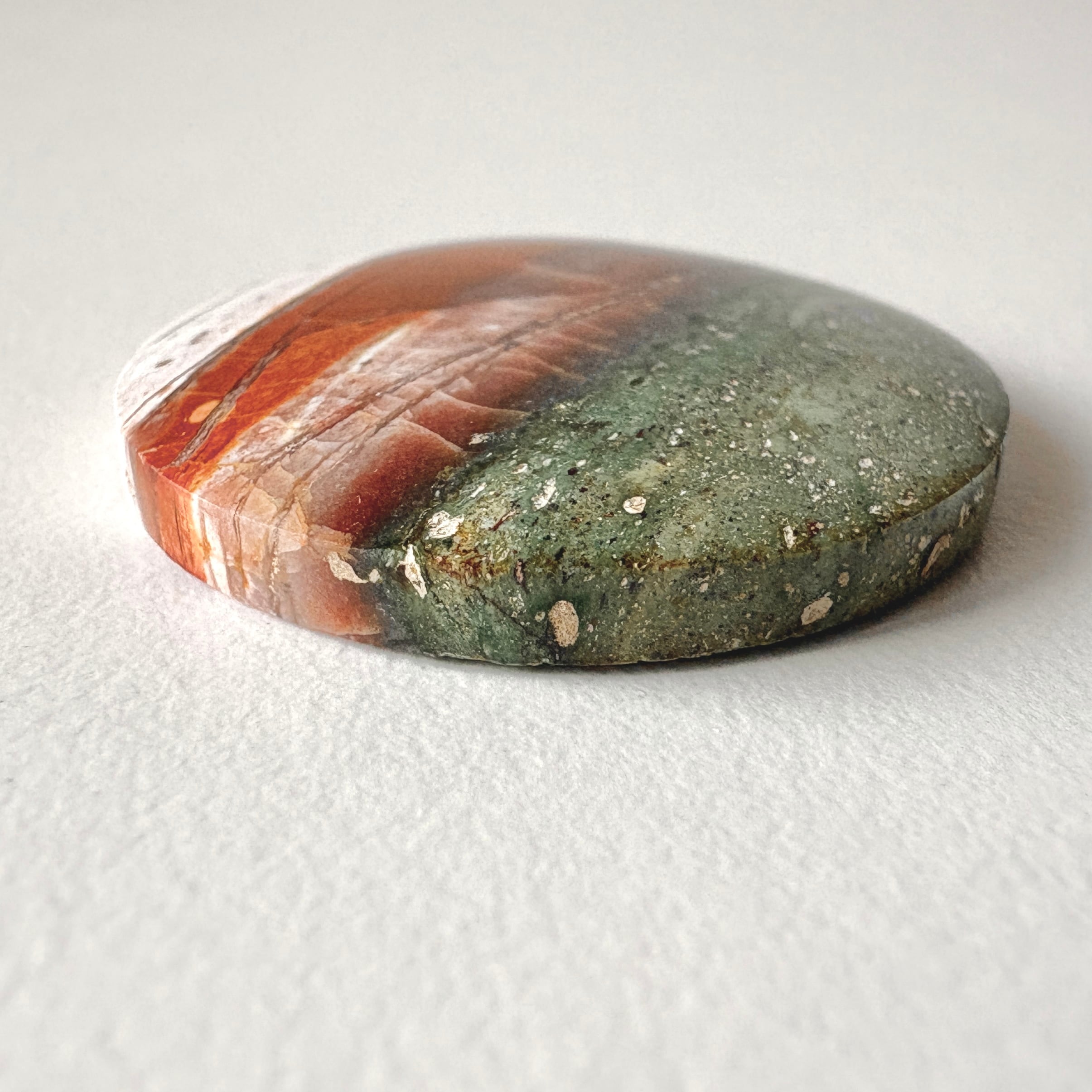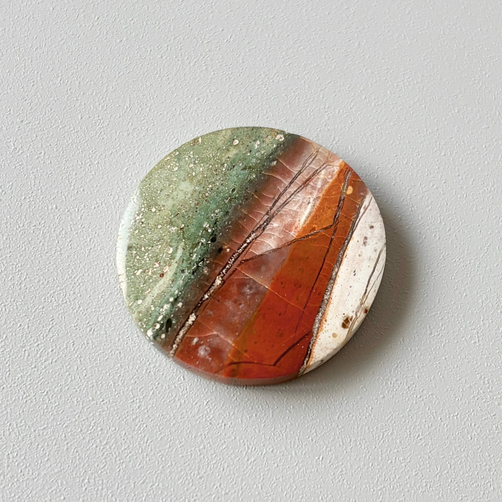 長い年月をかけてオパール化したペトリファイドウッド (植物の化石) です。風景画のようなものを選びました。