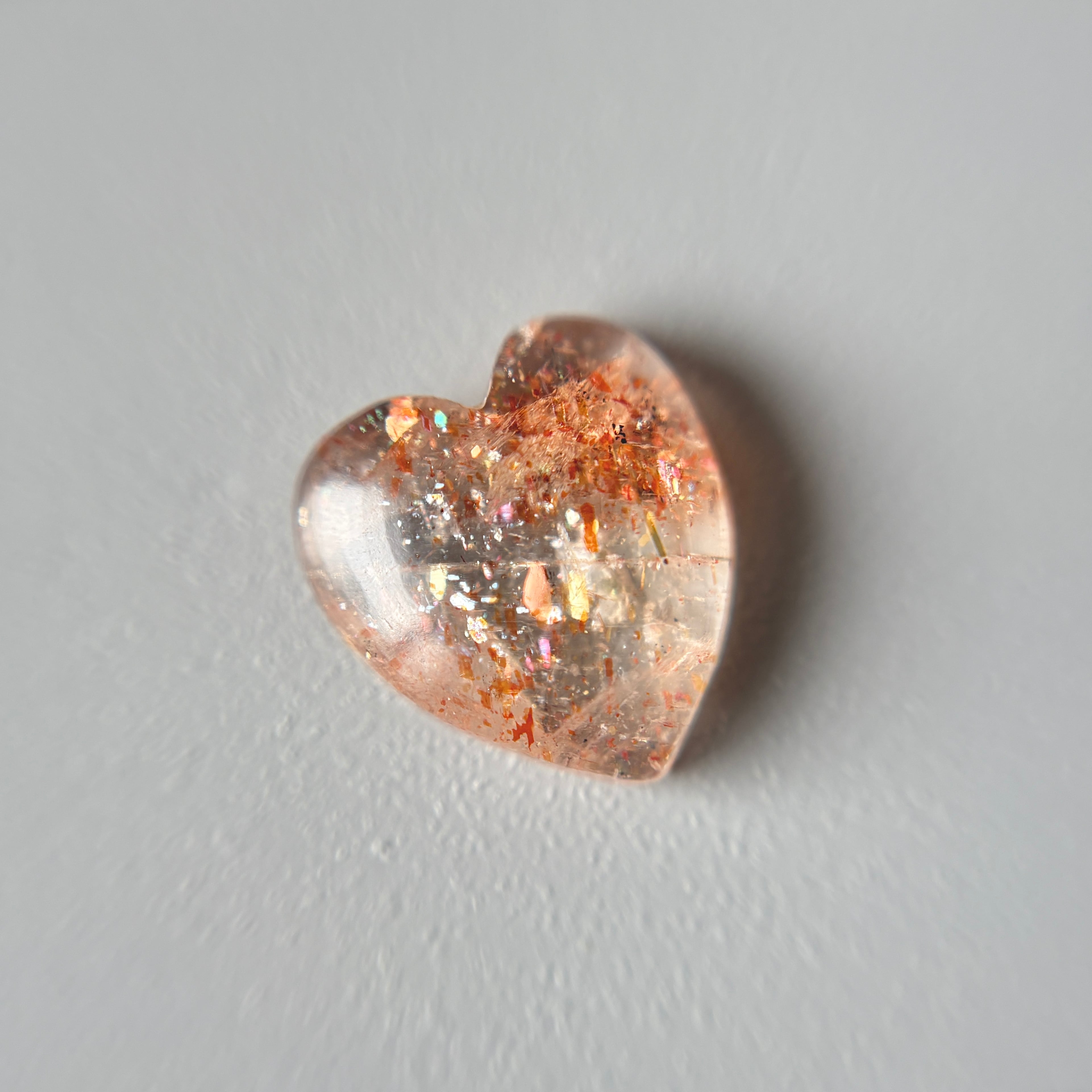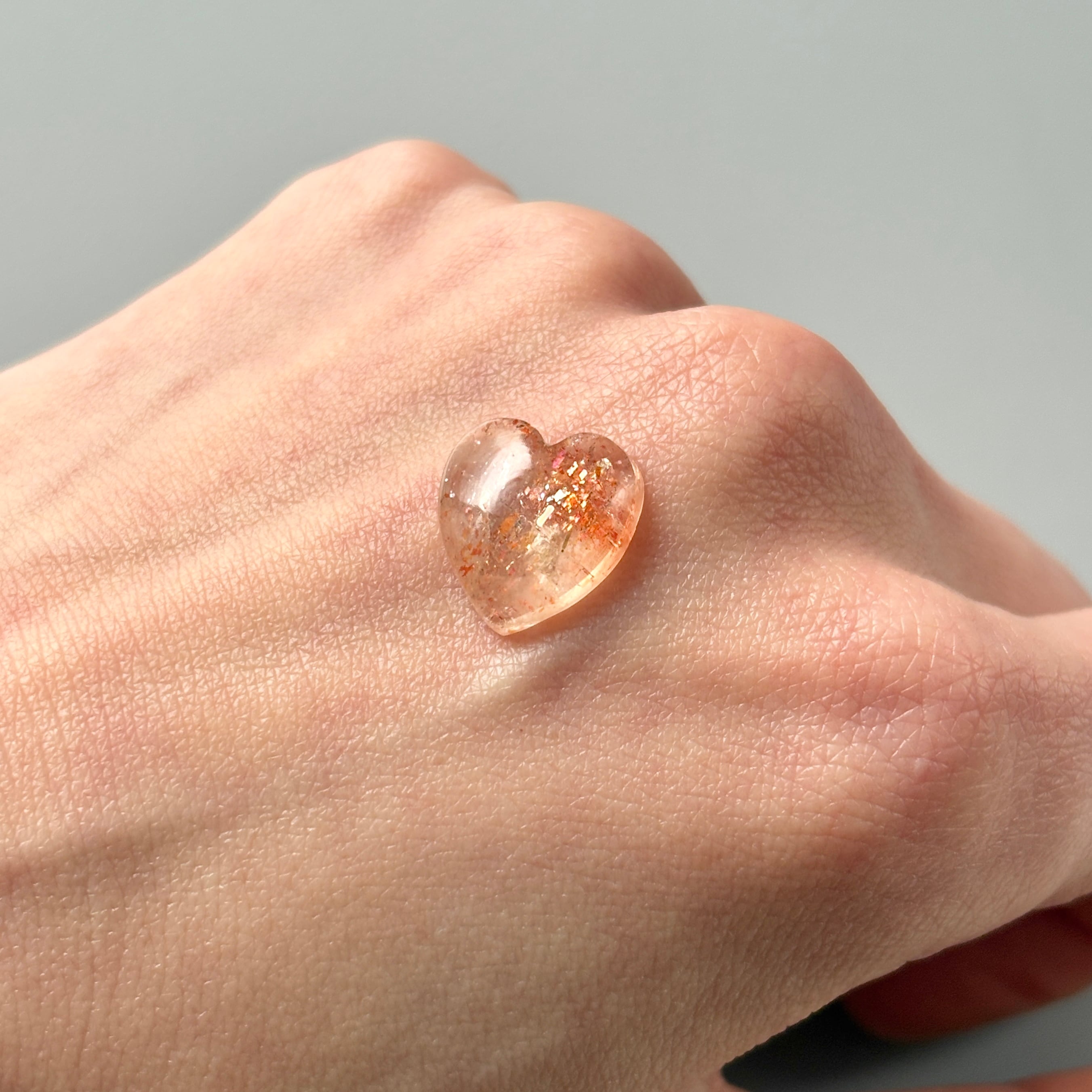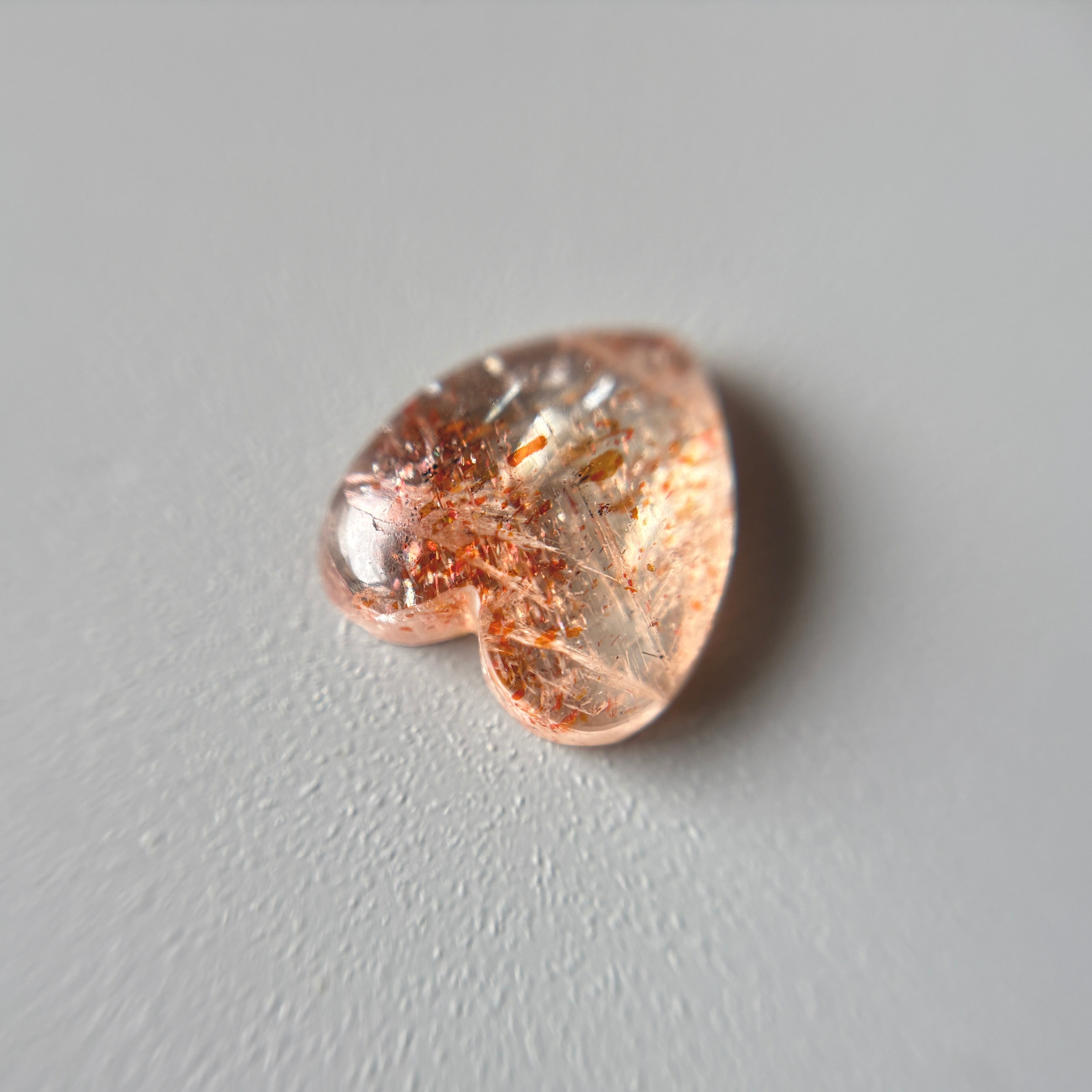 内包物はレピドクロサイトやヘマタイトなどで、その輝きからイリュージョンサンストーンとも呼ばれています。