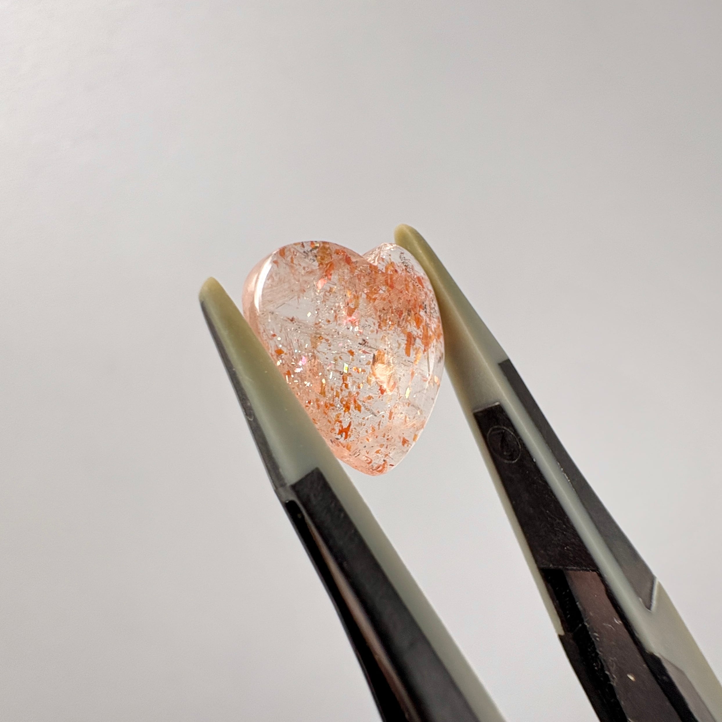 クリアカラーの地に七色のアベンチュレッセンスが輝くサンストーン。