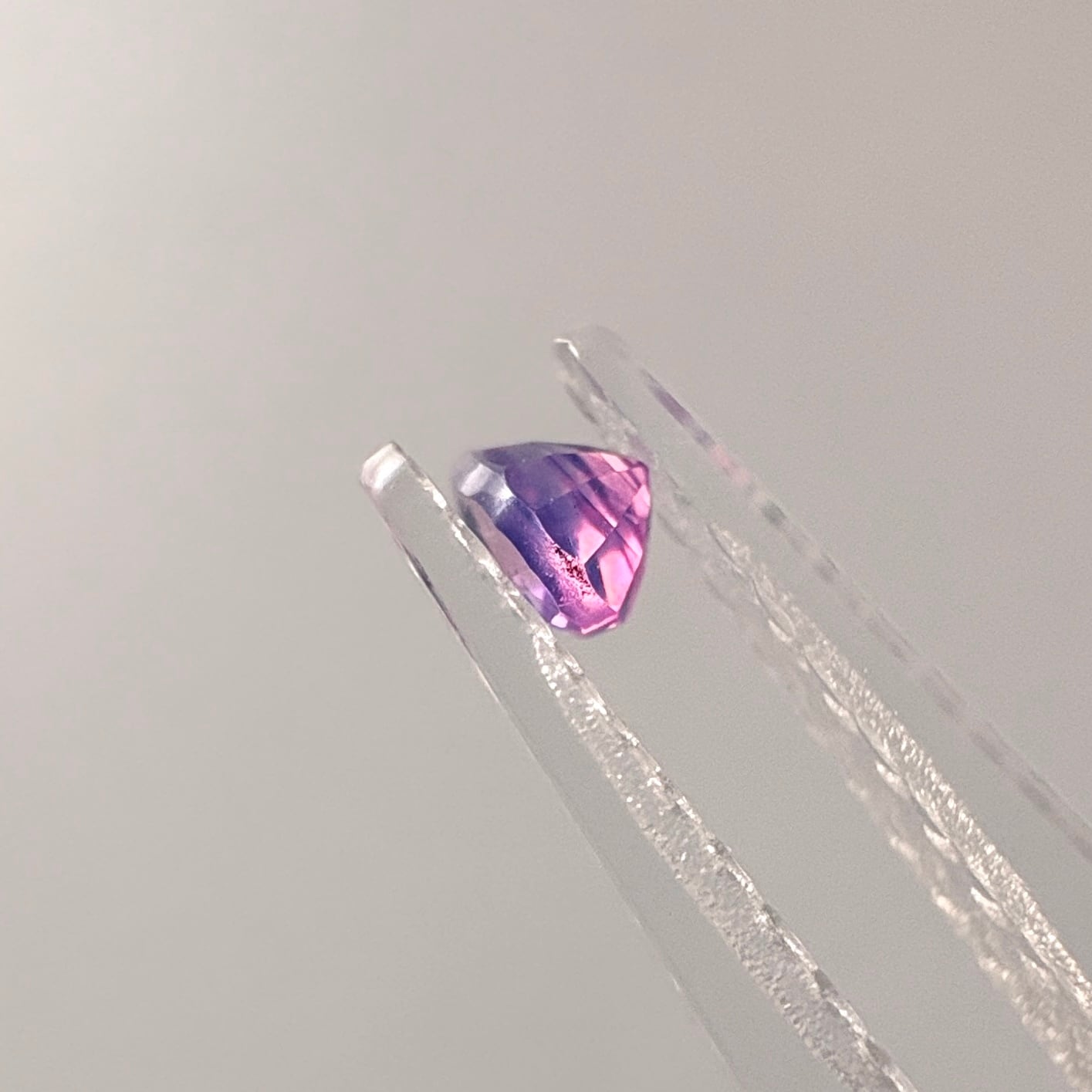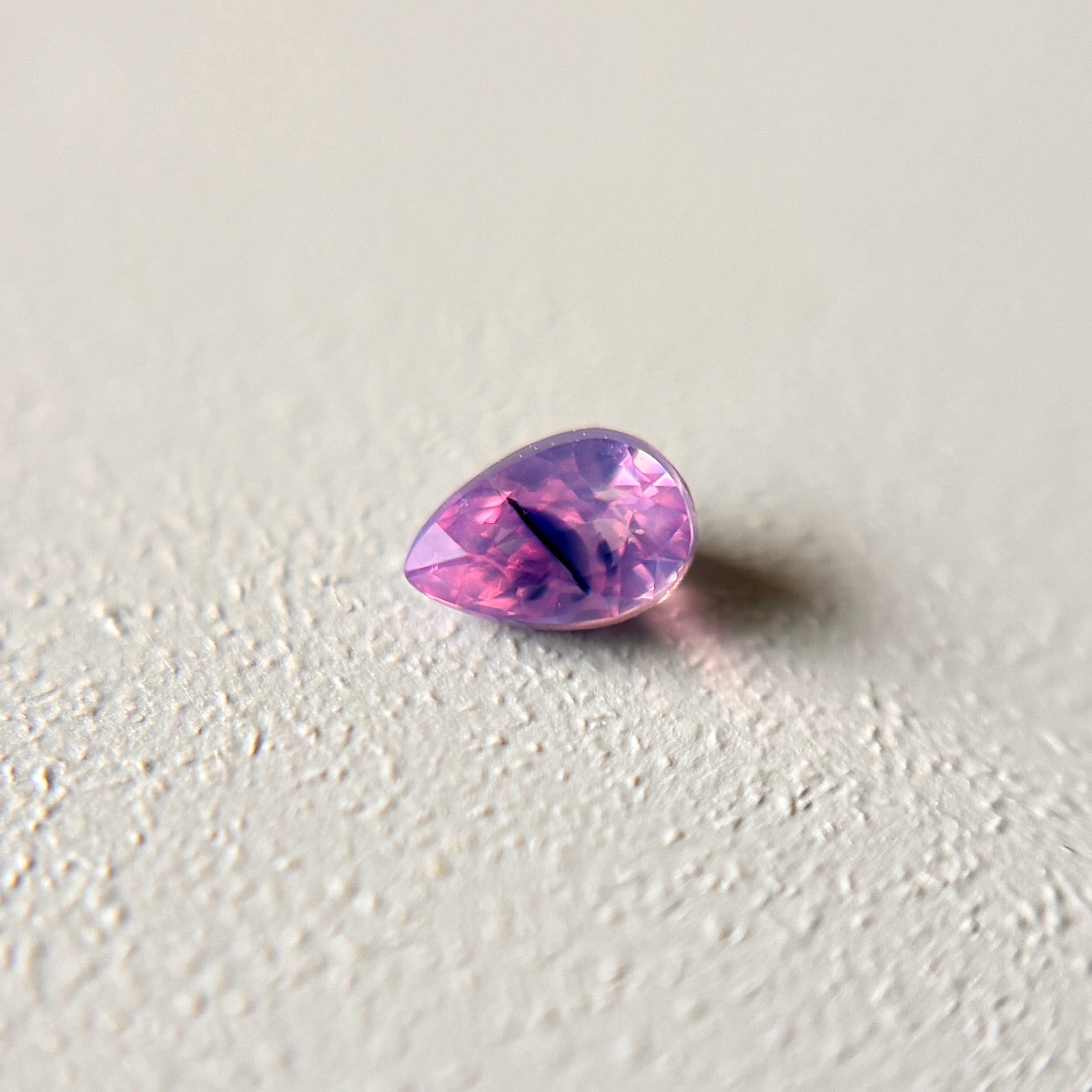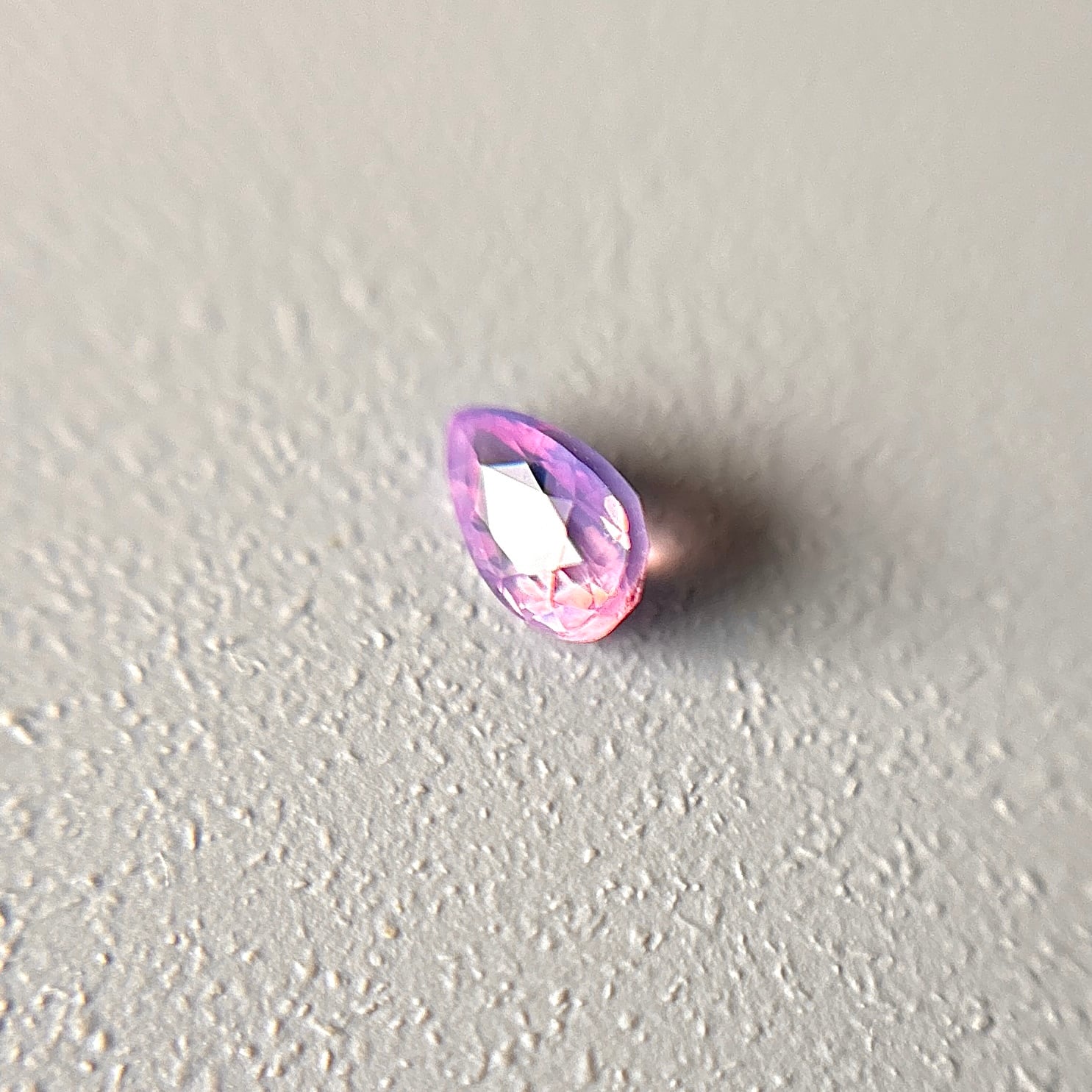 動物の瞳孔のようなスリット状の模様が入っていて愛嬌を感じます。角度によってクリアに見えるので明るい印象で、画像よりもビビッドなピンクの煌めきです。