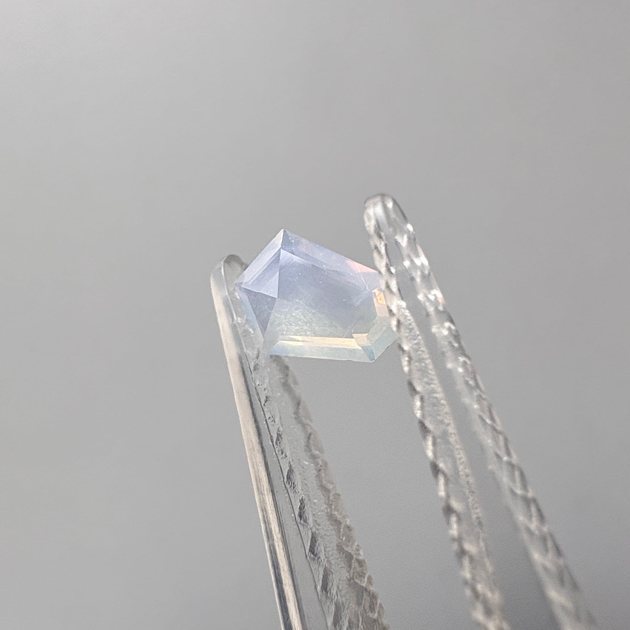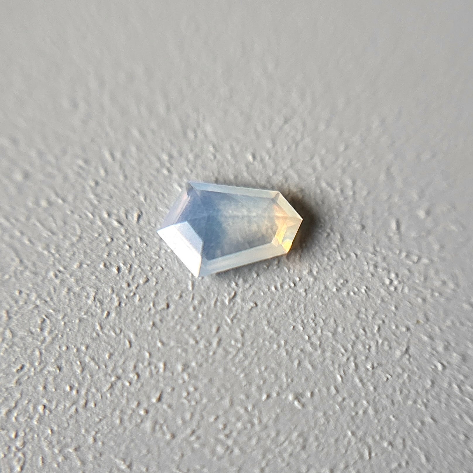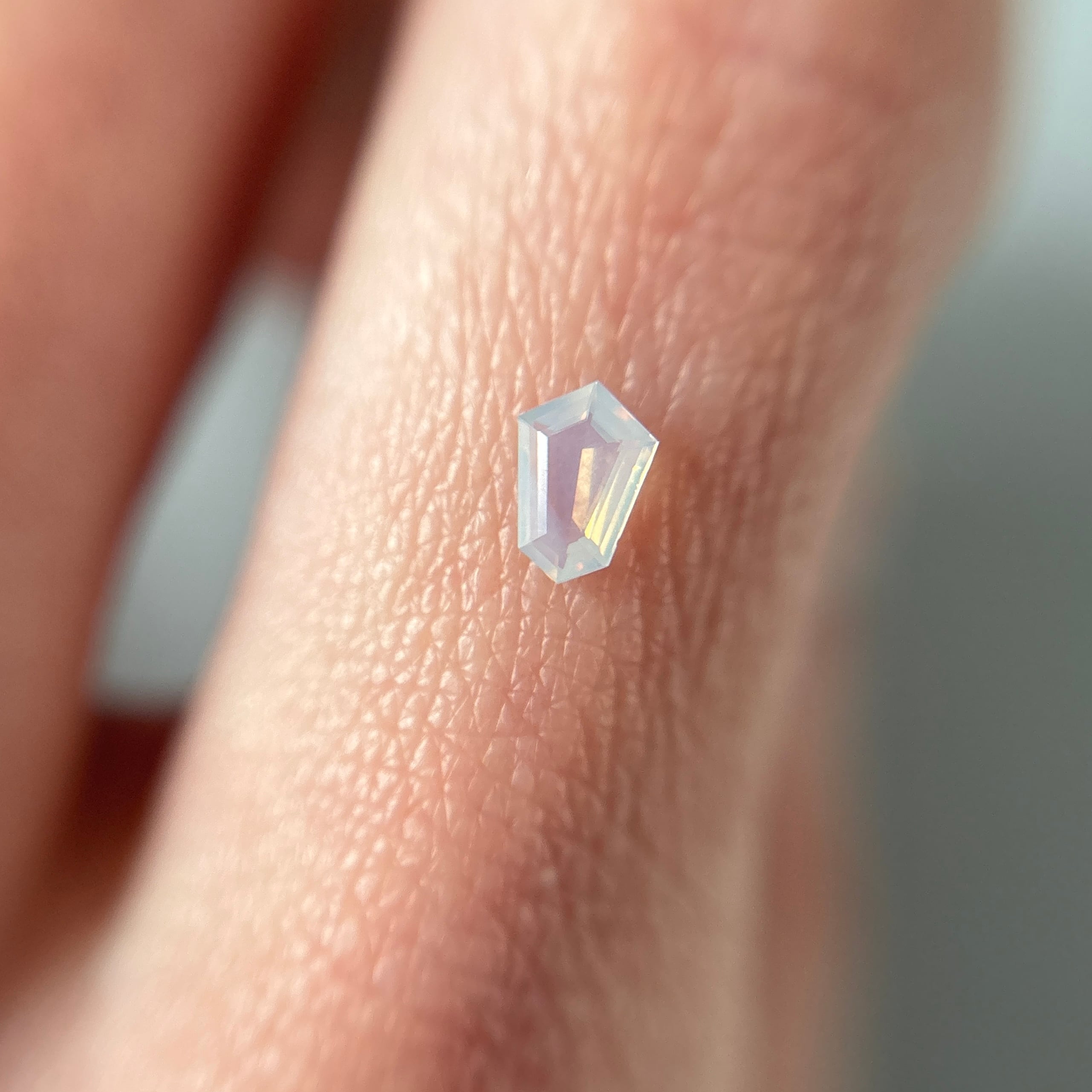 淡いパープリッシュブルーの中に見えるピンク、イエローの光彩。甘く夢のような色合いです。