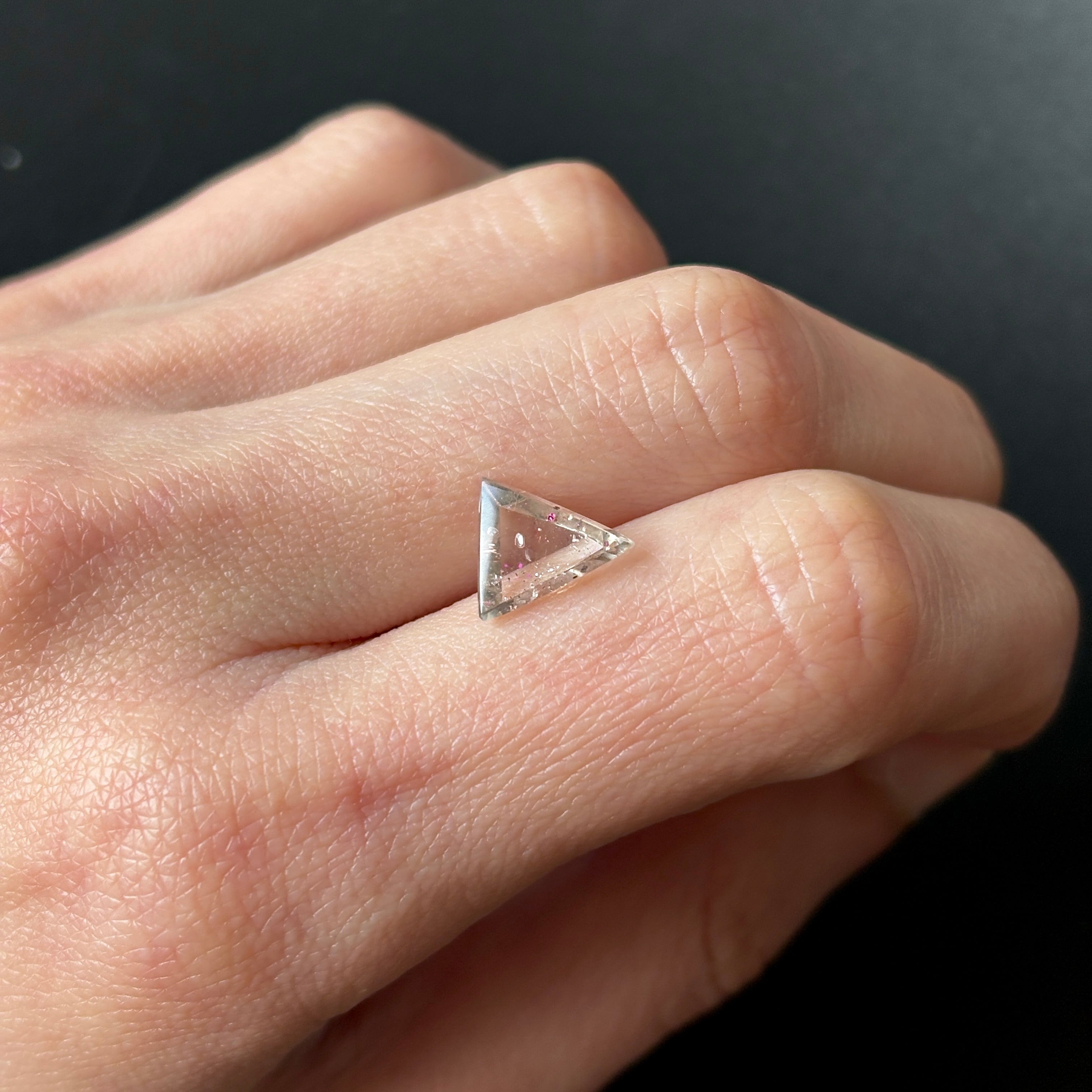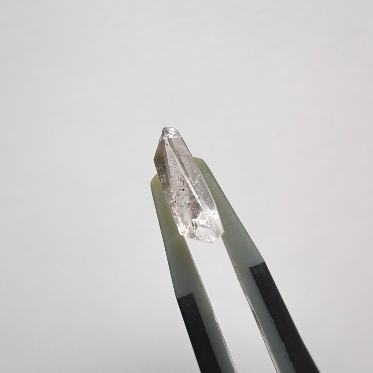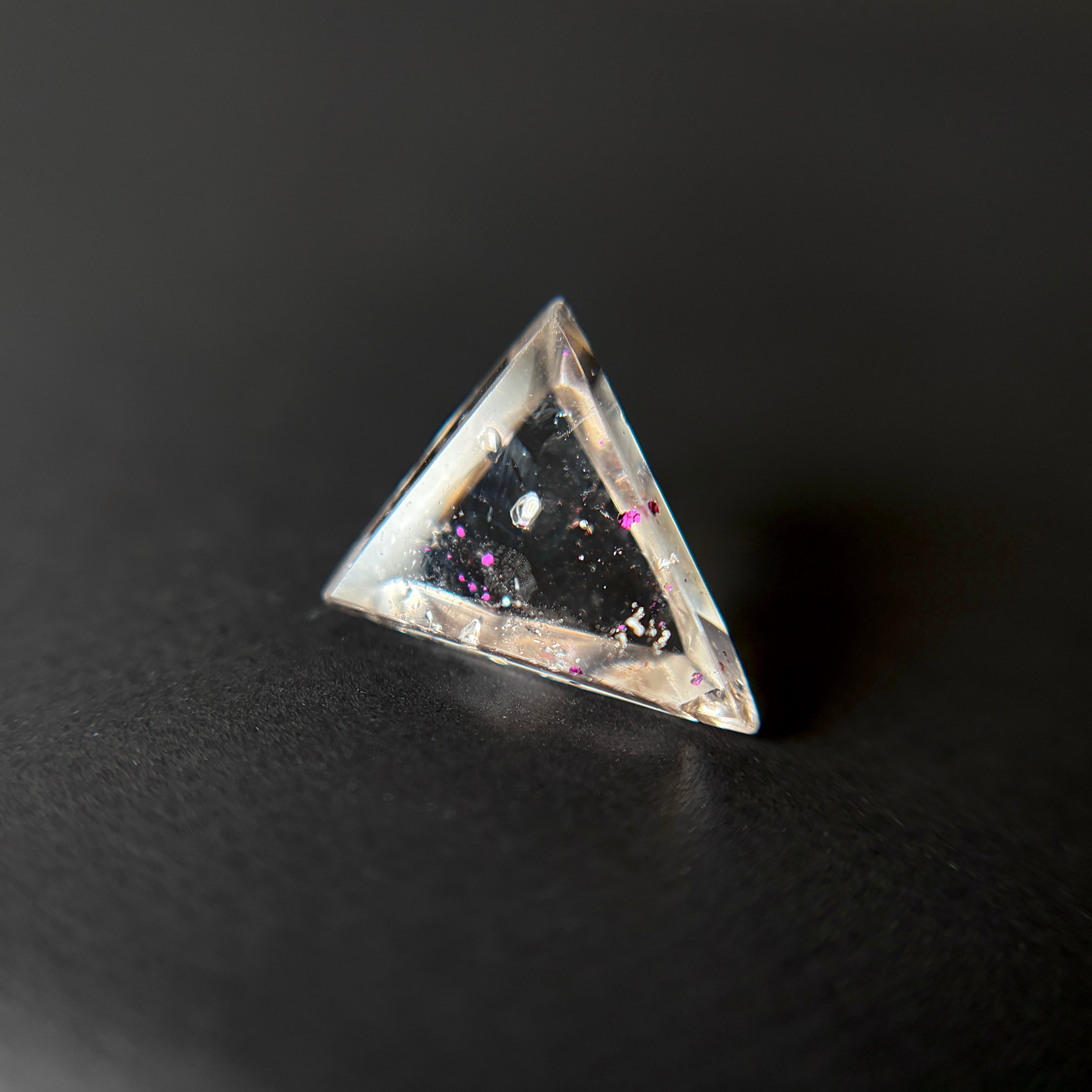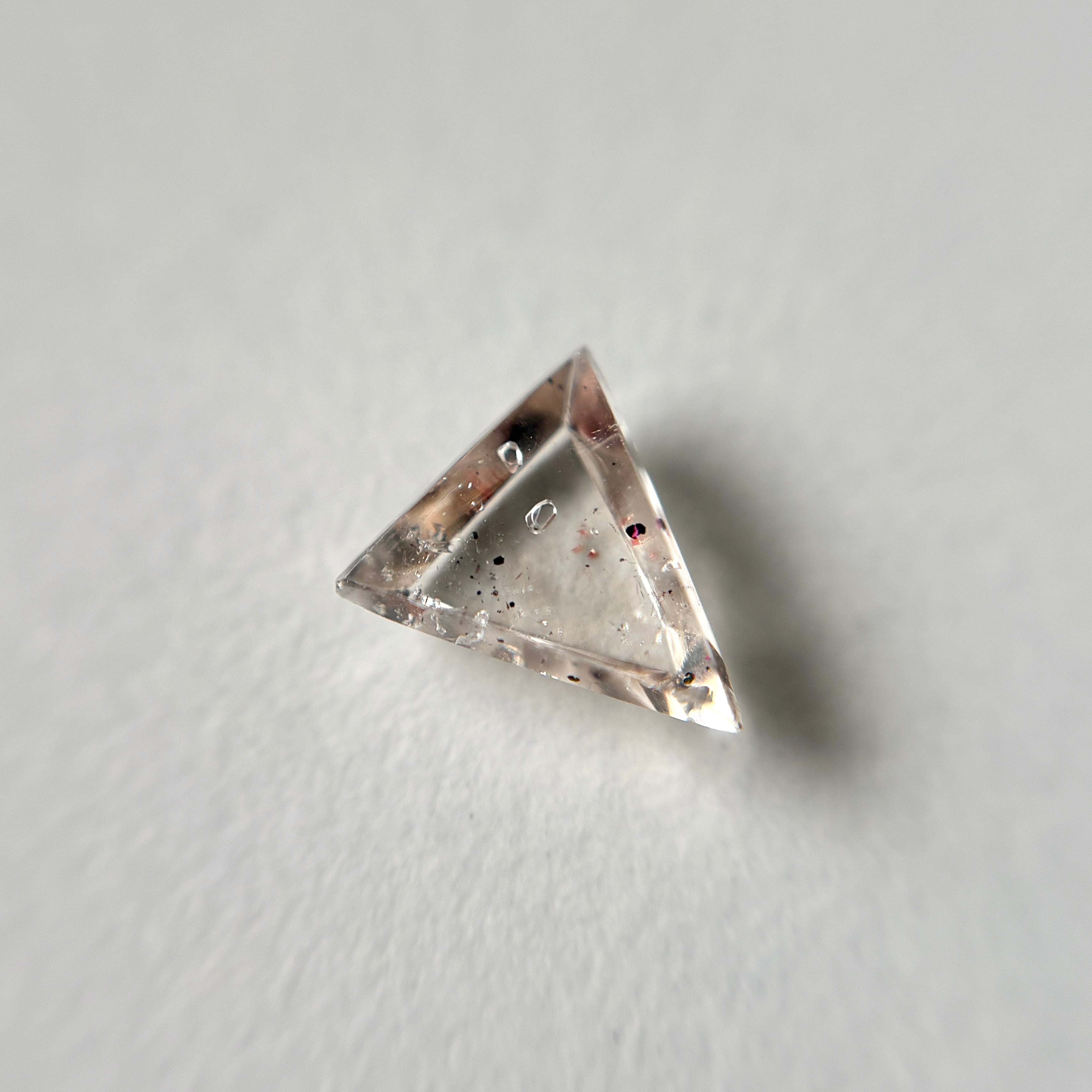 気泡のようなインクルージョンがいくつか入っており、至極澄んだクォーツの中でピンクの輝きとともに浮かんでいます。
