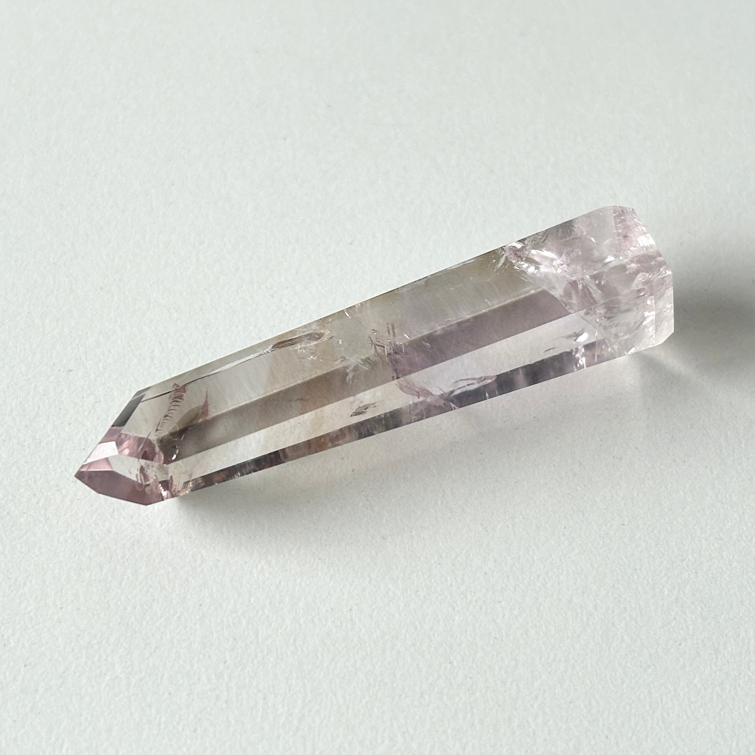 ブラウンのファントムがふわっと入った淡いアメシストです。UVライトをあてると刻まれた時間を華やかに、贅沢に映し出してくれます。