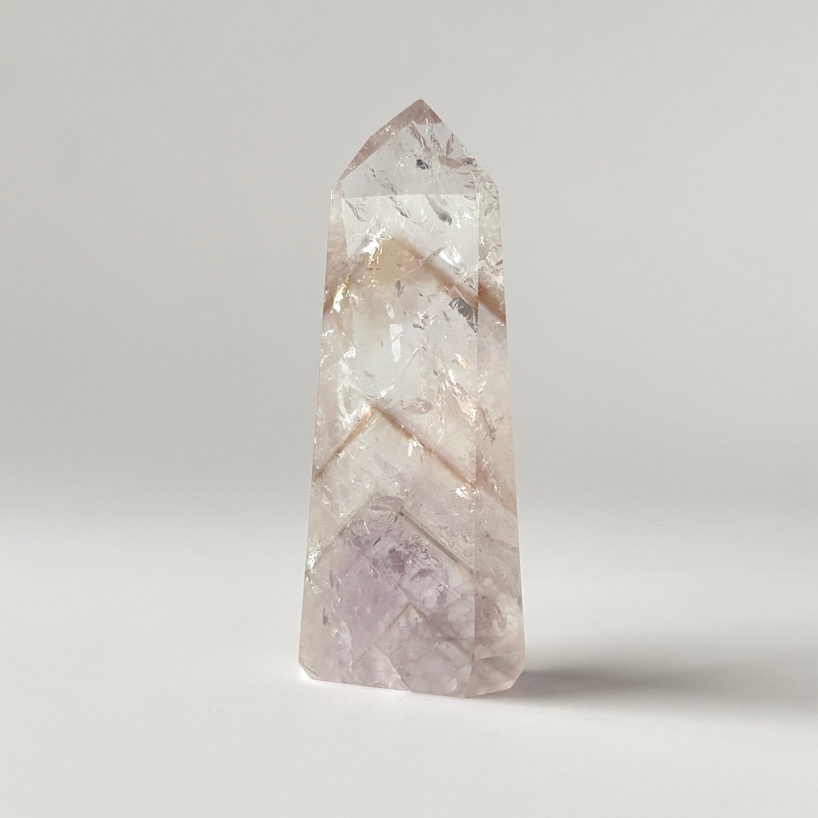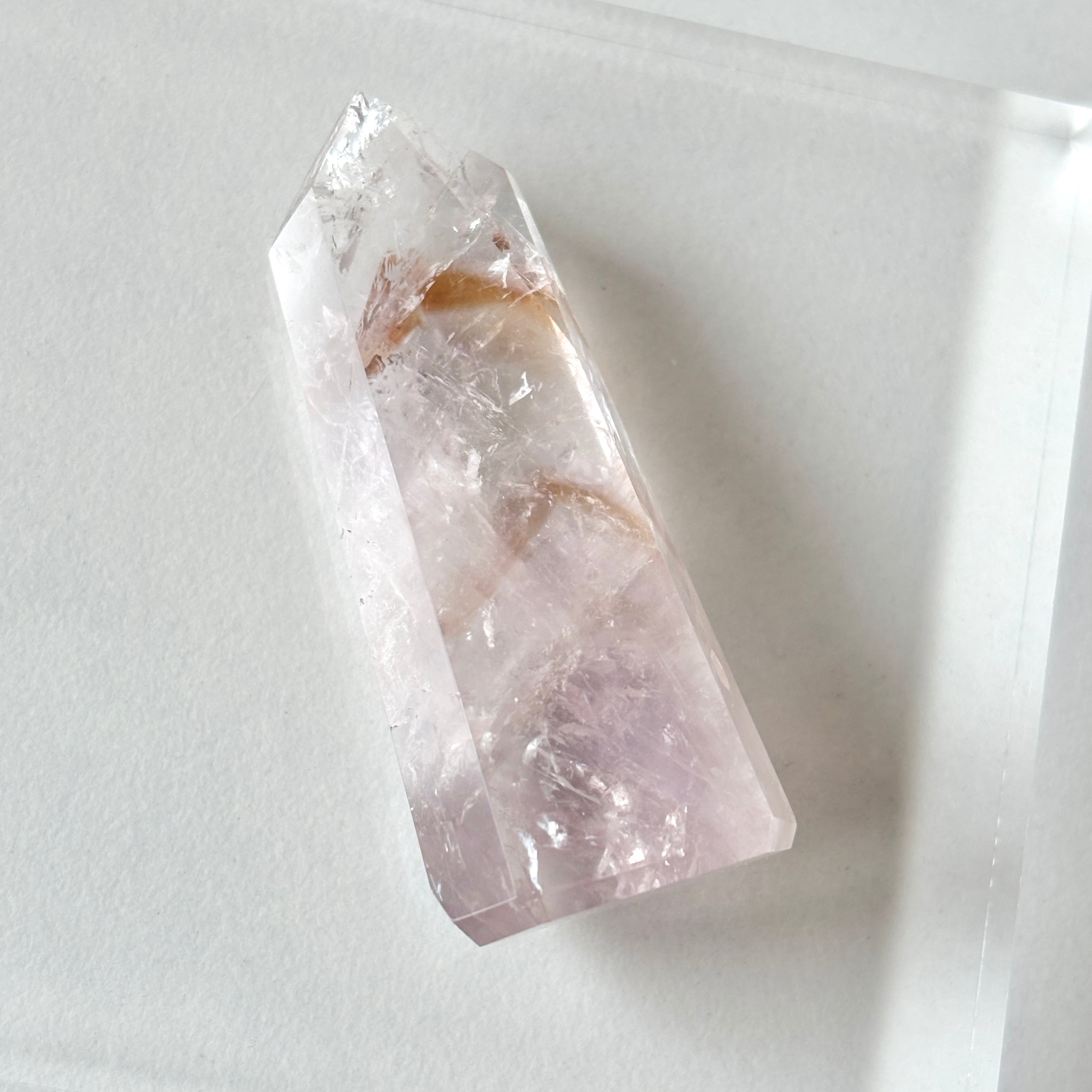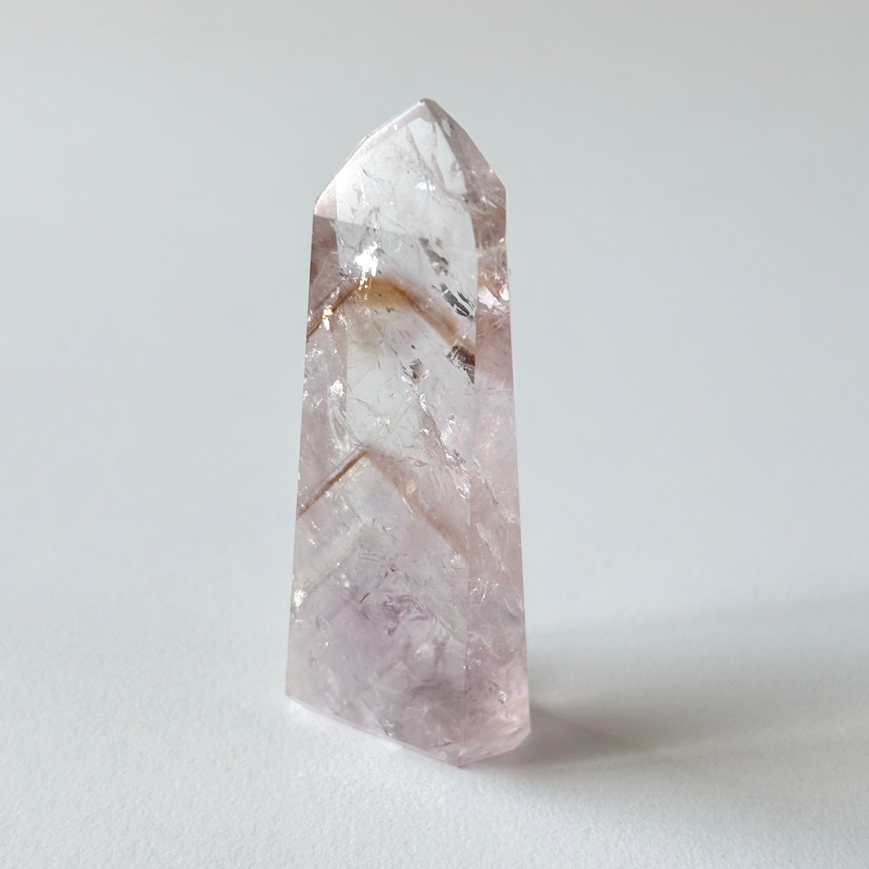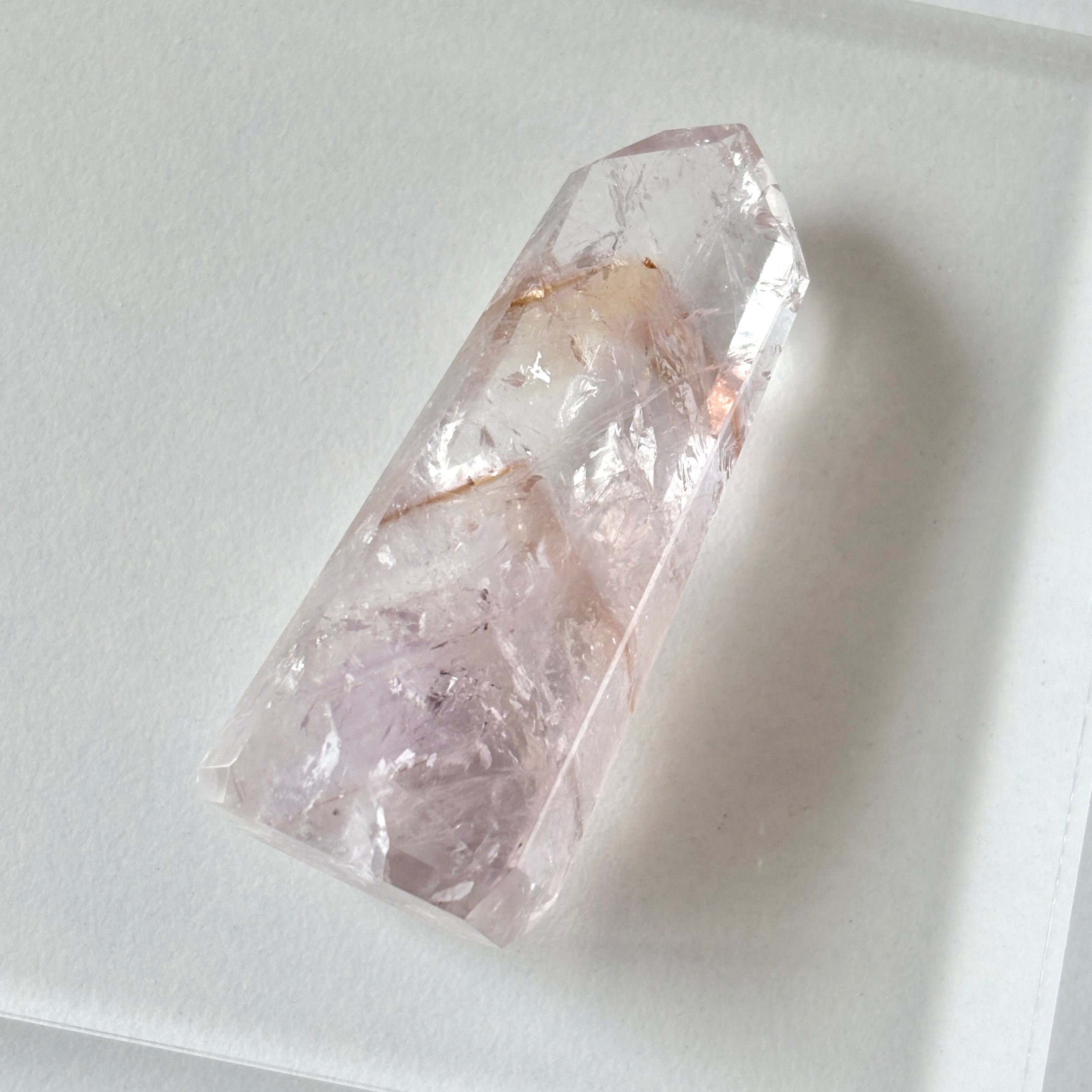 ブラウンのファントムがふわっと入った淡いアメシストです。UVライトをあてると刻まれた時間を華やかに、贅沢に映し出してくれます。