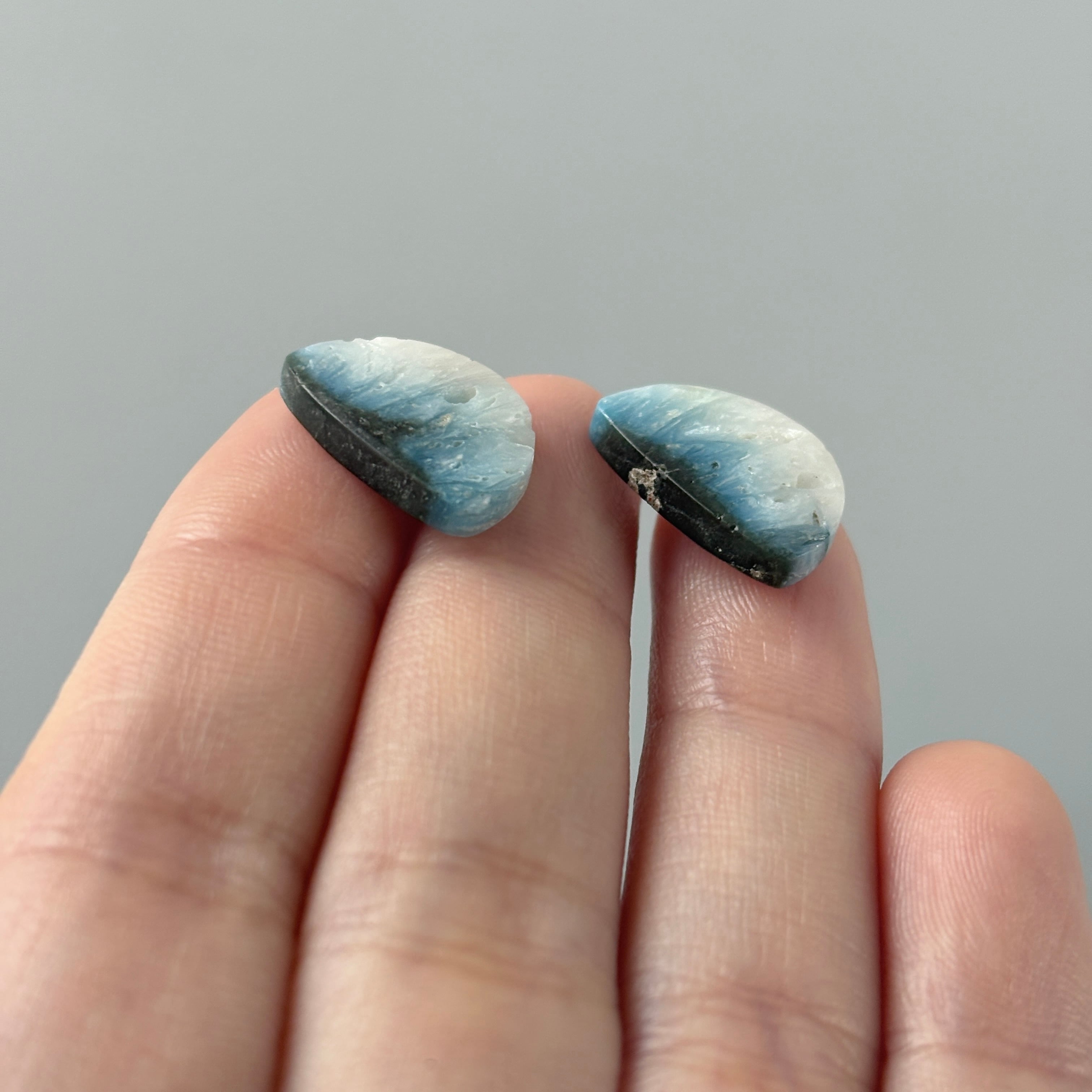 ガラス質ですが主成分がサファイアに近い性質を持つため硬度が高く、氷河のように鮮やかなブルーはコバルトによるものだそうです。