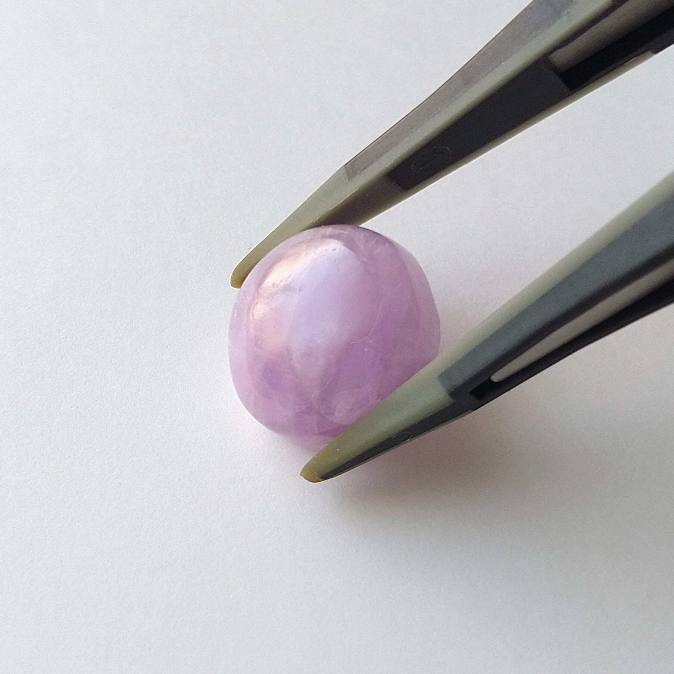 こちらは宝石質のルースと違いミルキークンツァイトと呼ばれているもので、一部シャトヤンシー効果が見られます。もちろん蛍光もします。