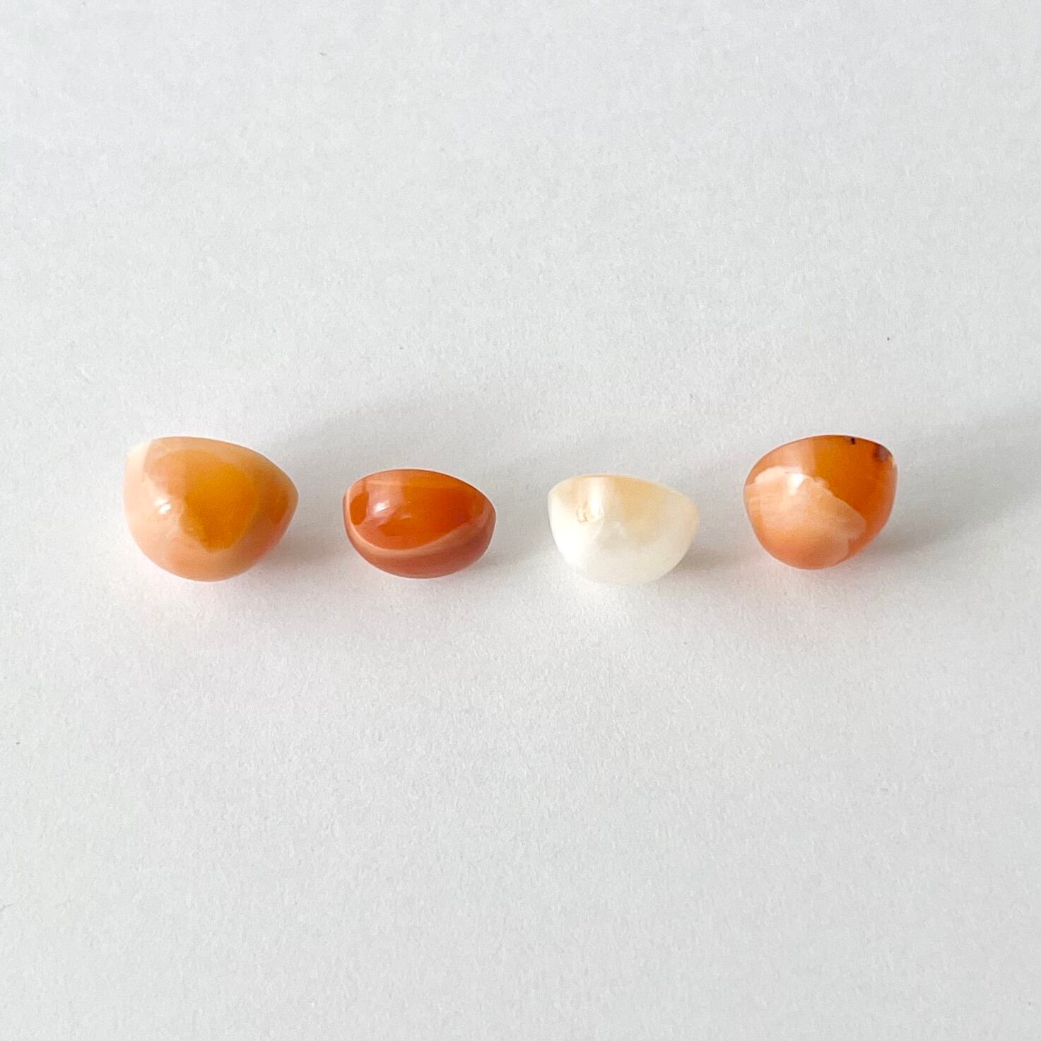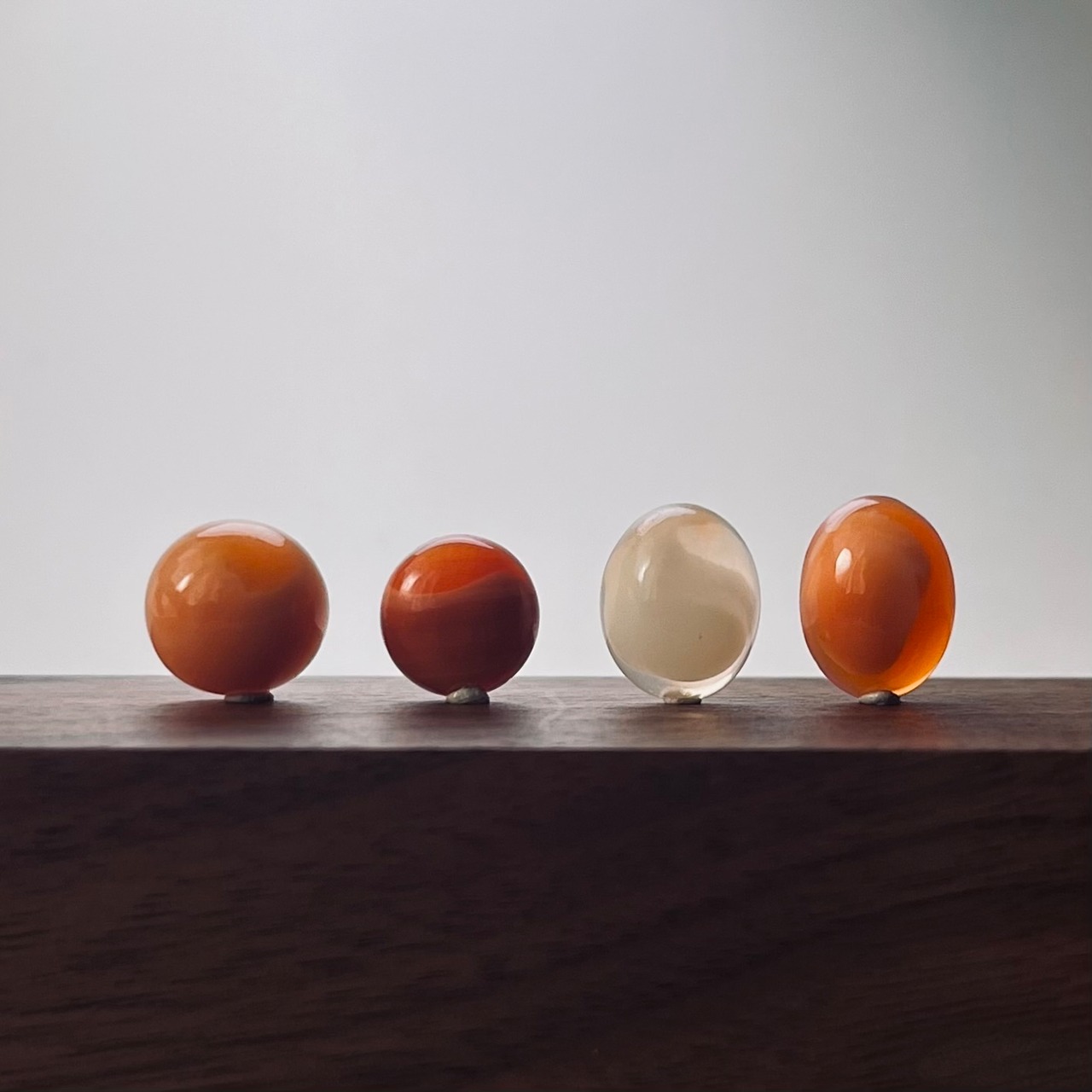 [04] 鮮やかなオレンジのボディ前面に乳白色の内包物を纏ったおしゃれな子です。かすかですが遊色があります。