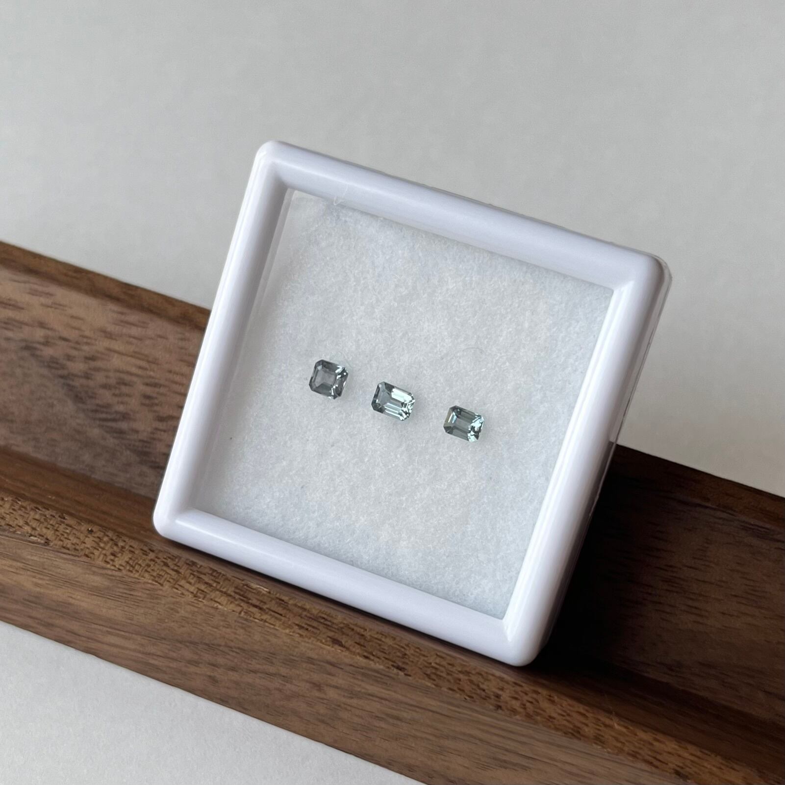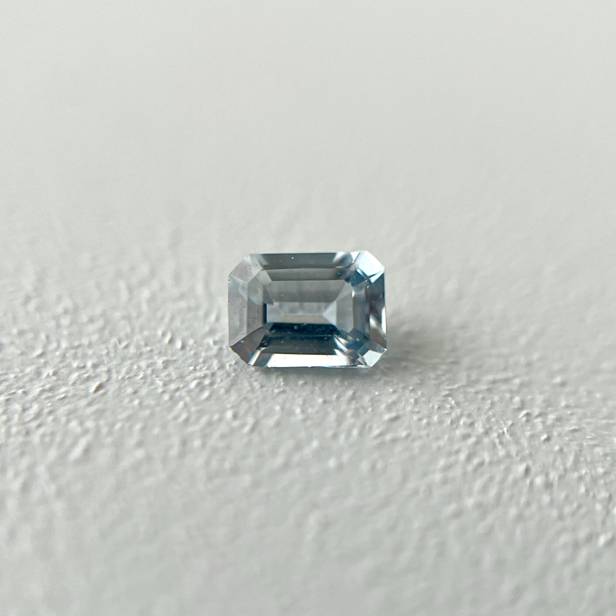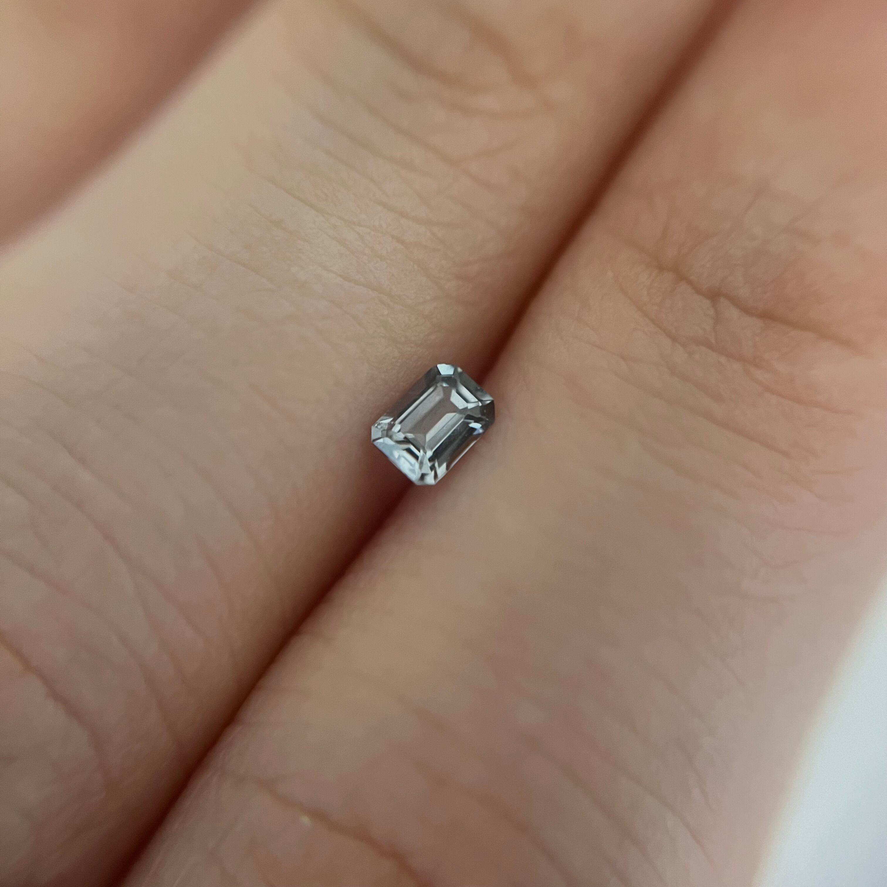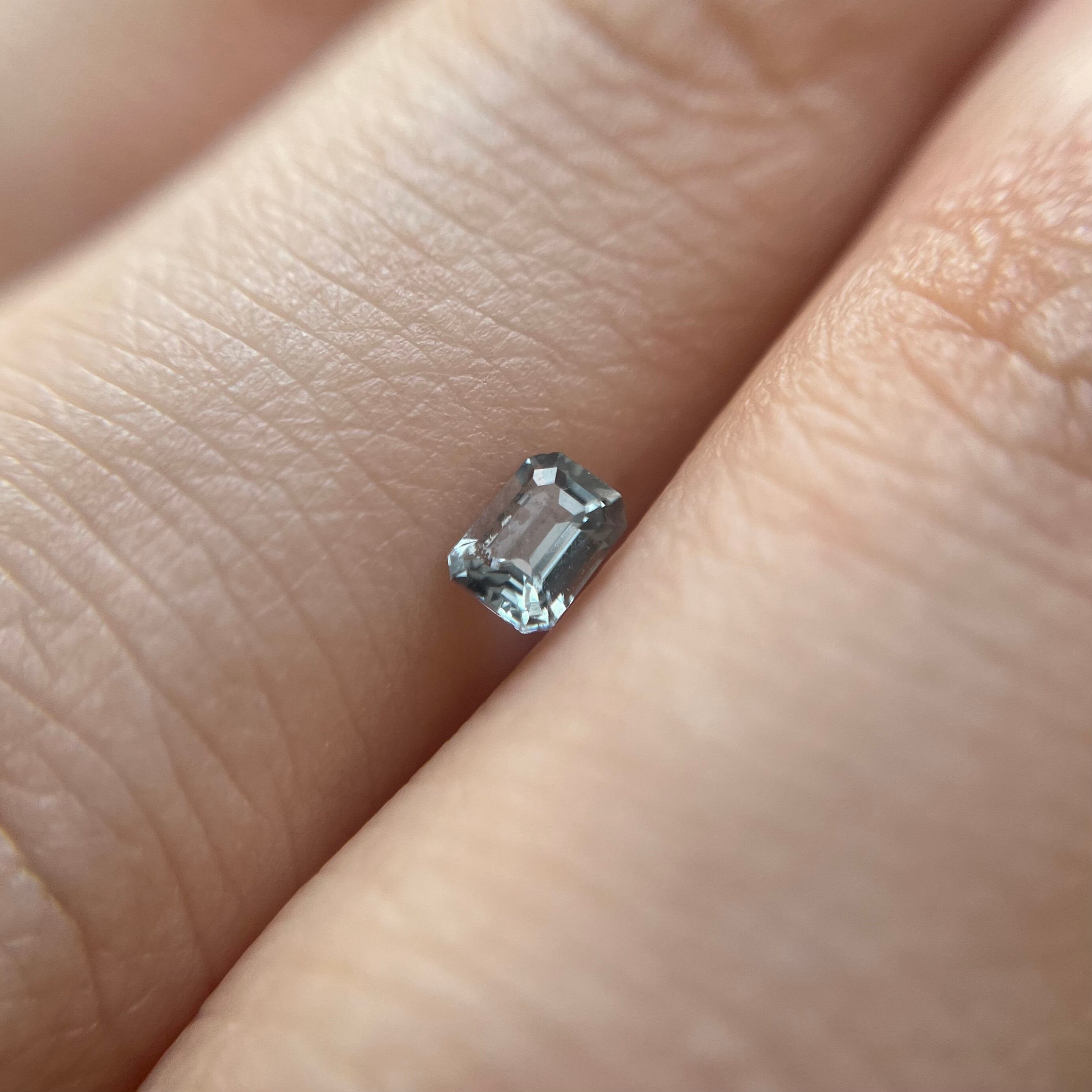 自然光を当てると爽やかな水色に、日陰や蛍光灯のもとではグラファイトに見えるニュアンスカラーのスピネル。