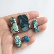 備考:※バッキング処理あり(柔らかいターコイズを補強するための処理です)、スタビライズド処理あり(樹脂を浸み込ませて強度を上げる処理です)