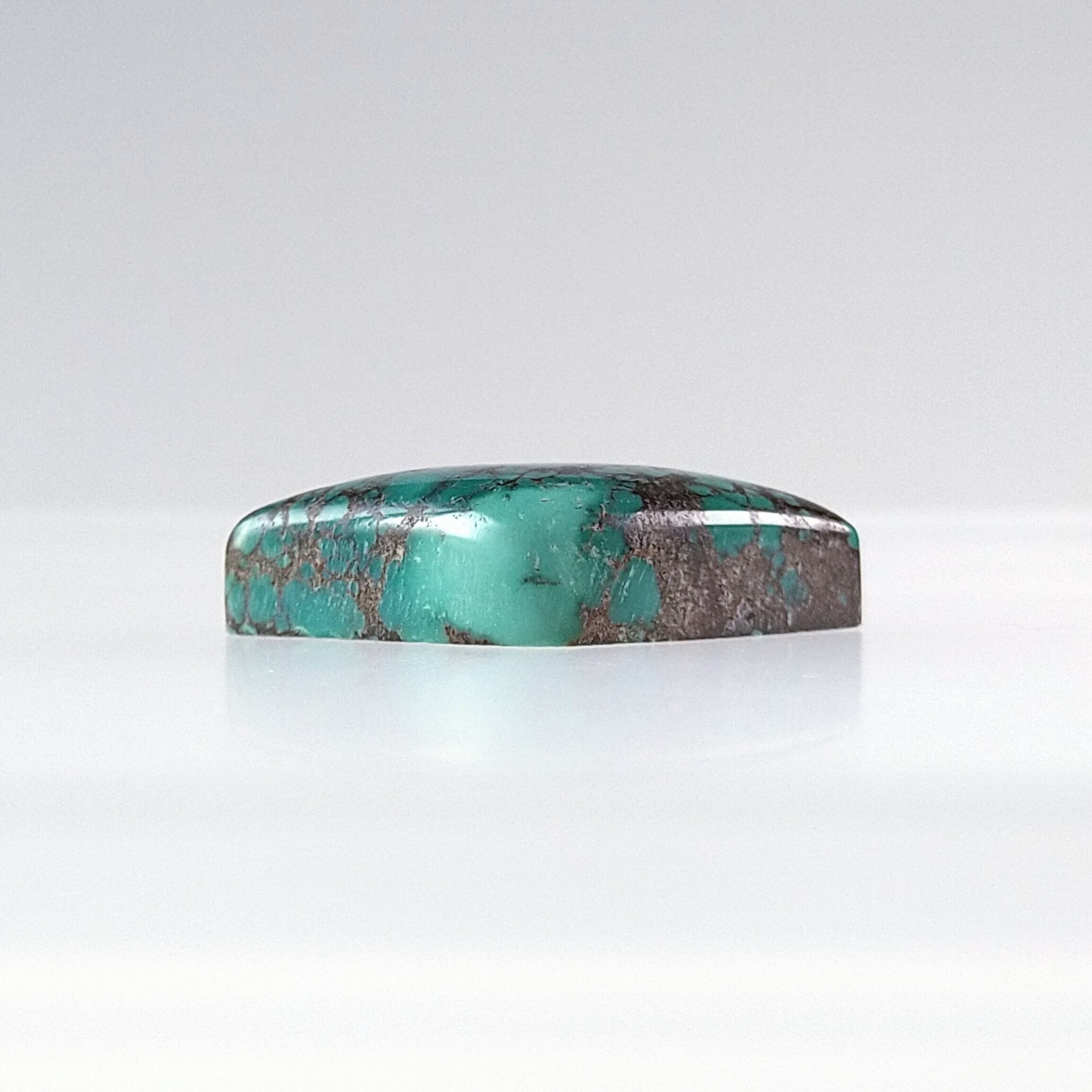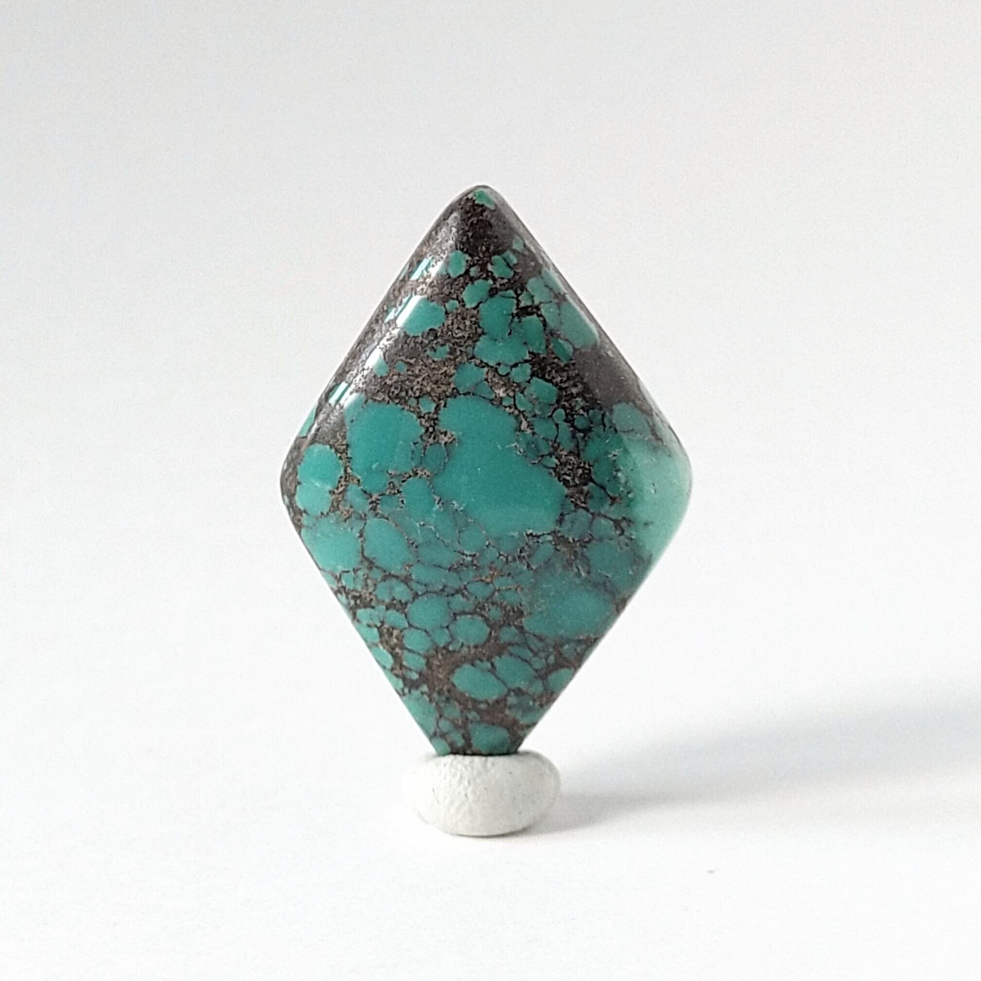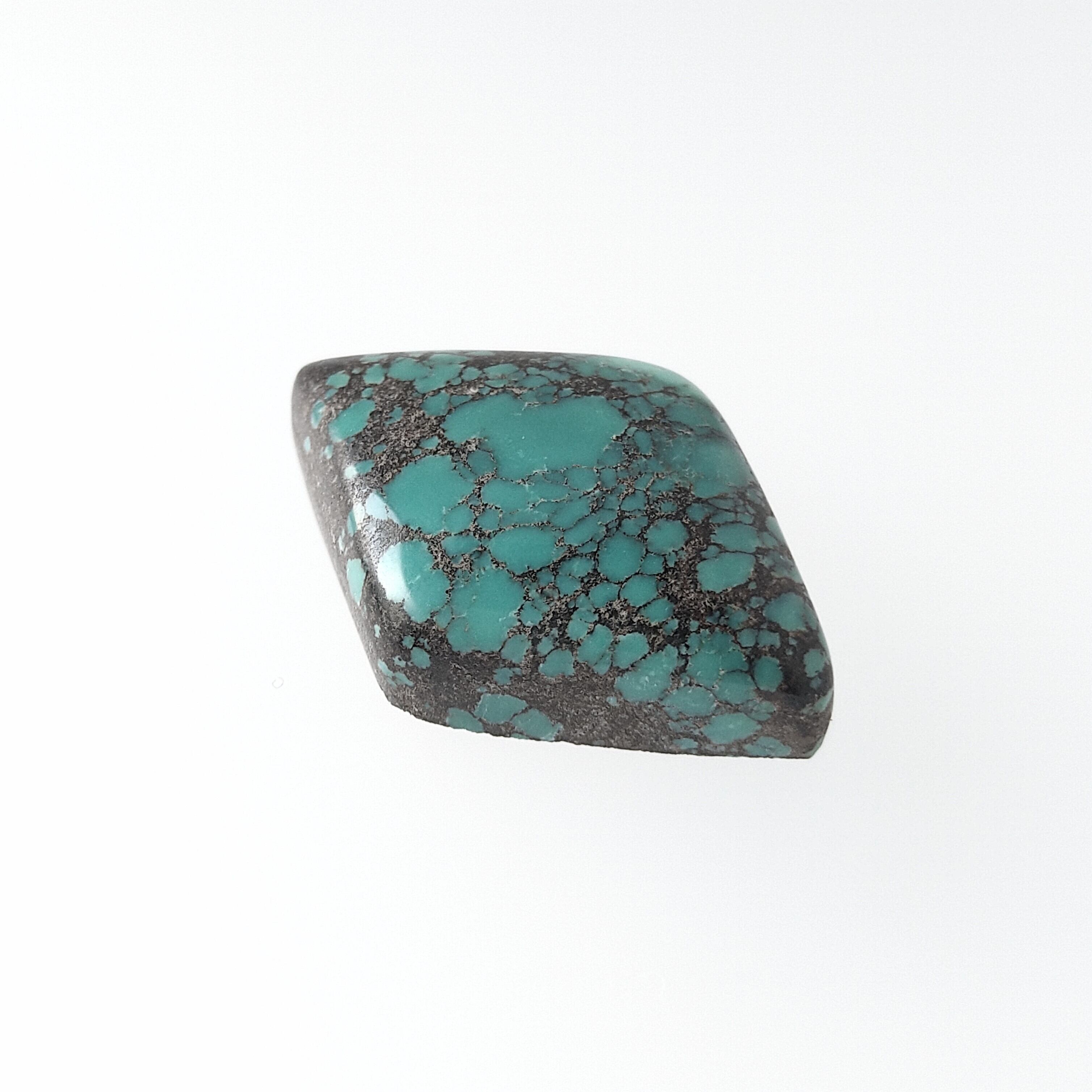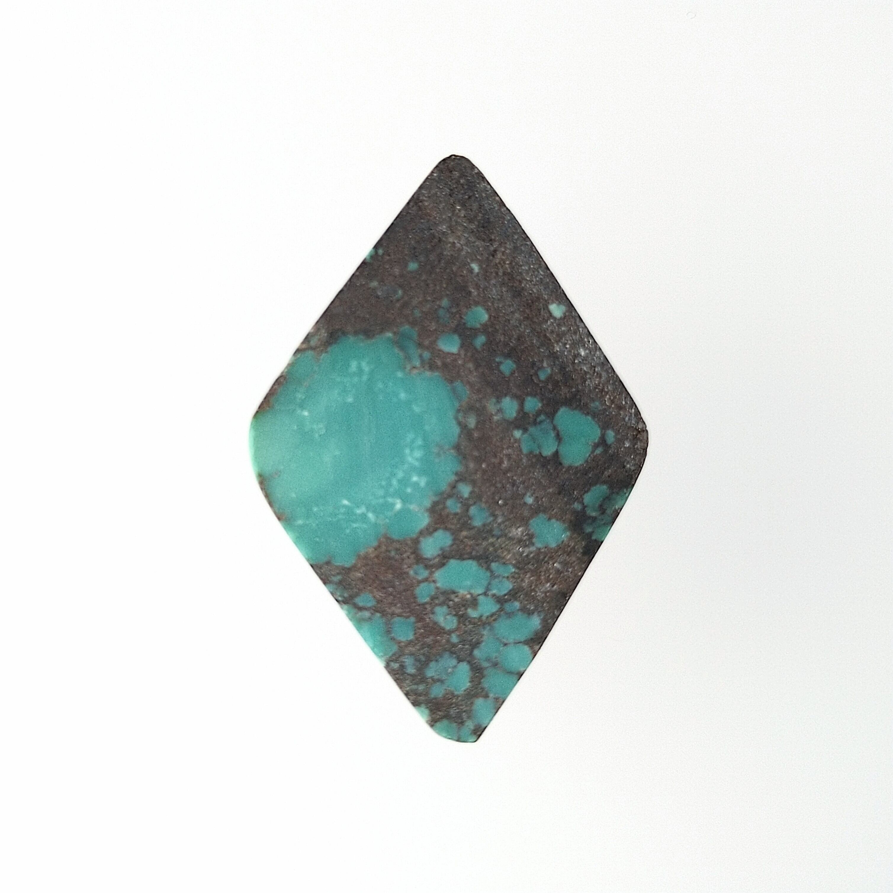 こちらは大ぶりのダイヤ型に、チョコレート色の網目模様とブルーグリーンが広がった存在感あるルースです。