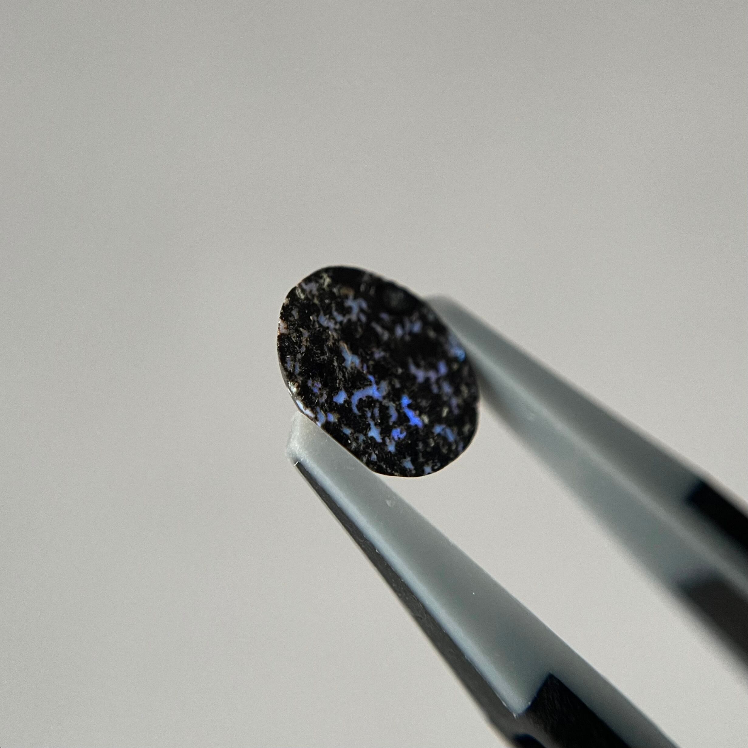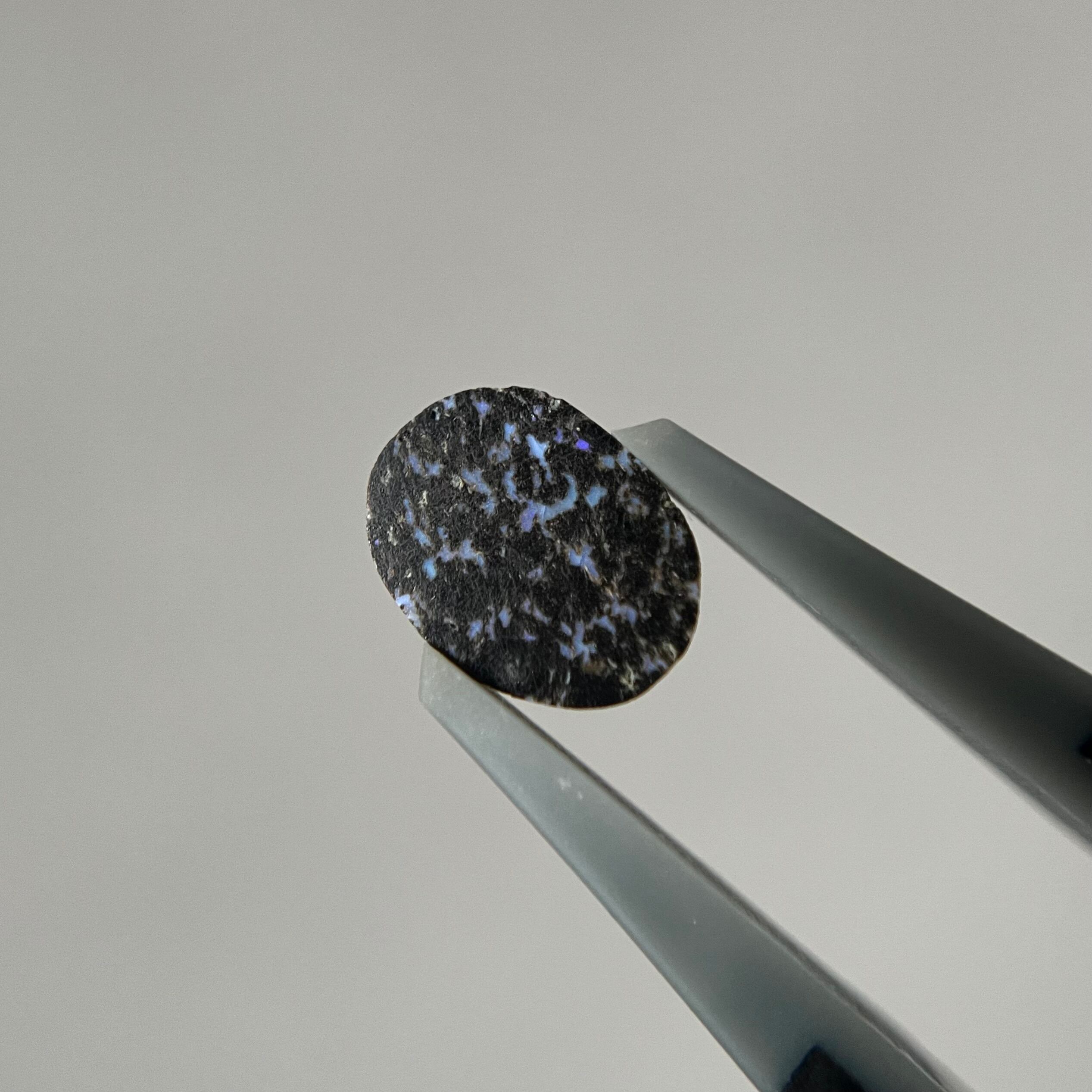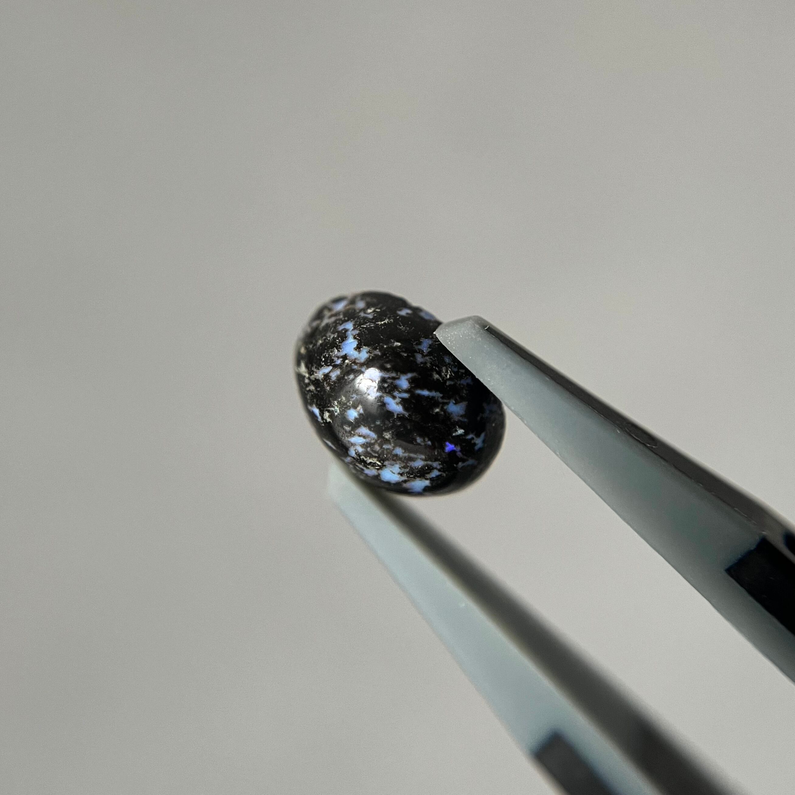黒い玄武岩にオパールが入り込んだレオパードオパール。