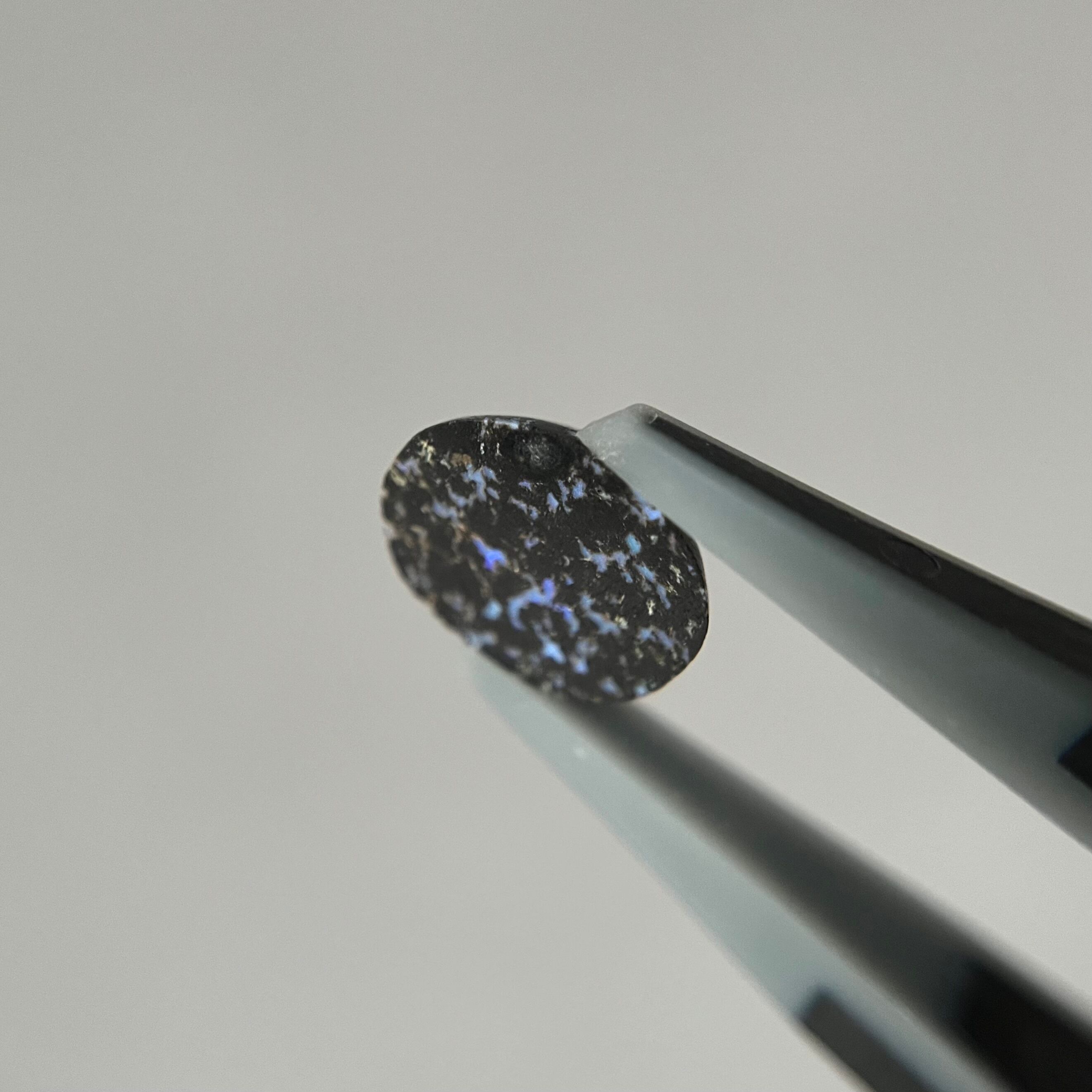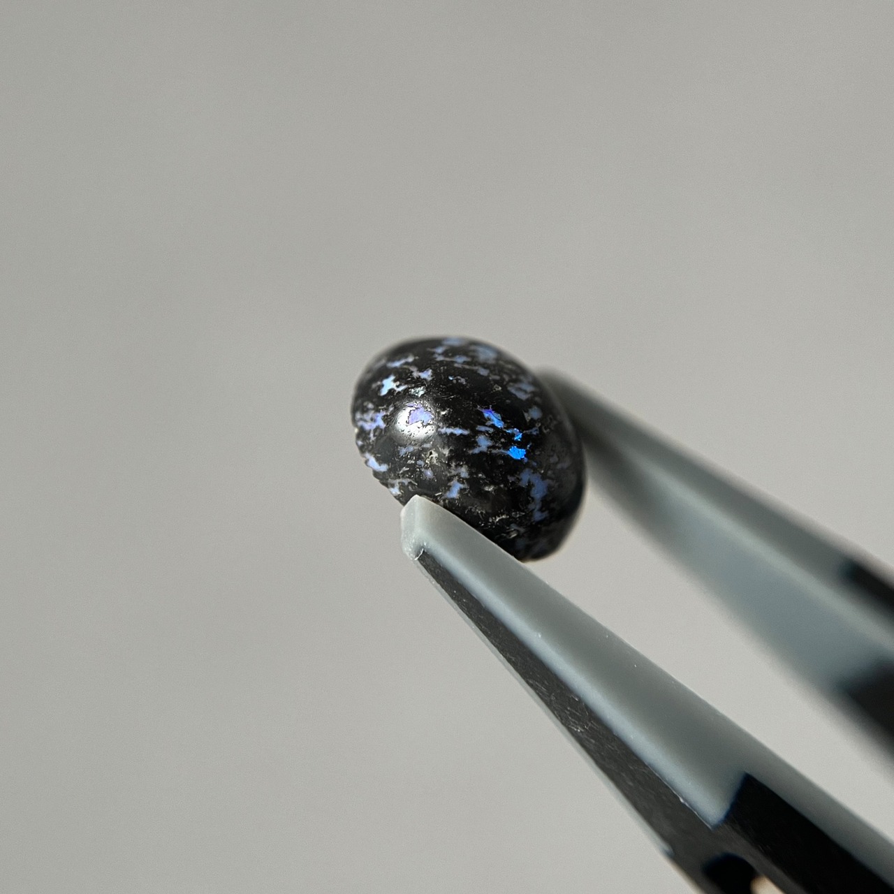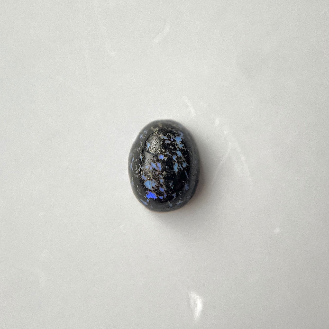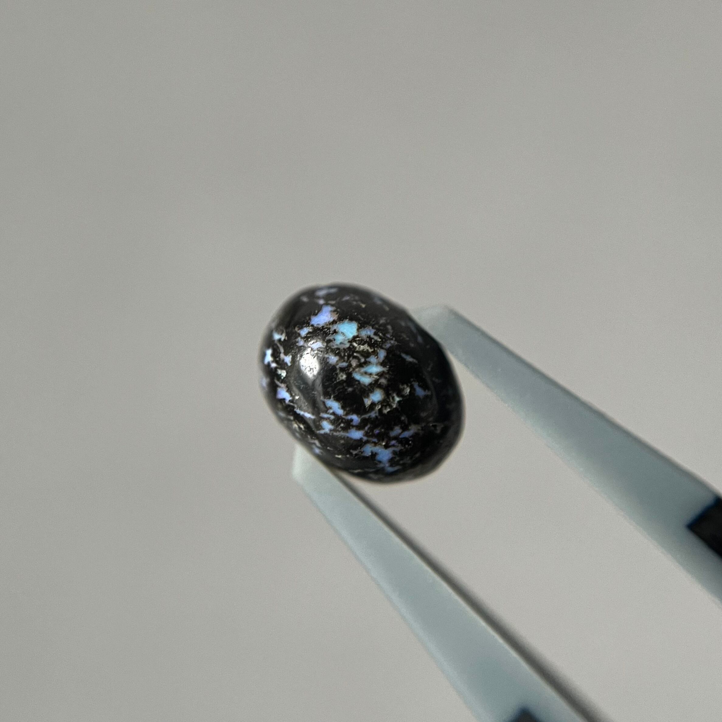 黒い玄武岩にオパールが入り込んだレオパードオパール。