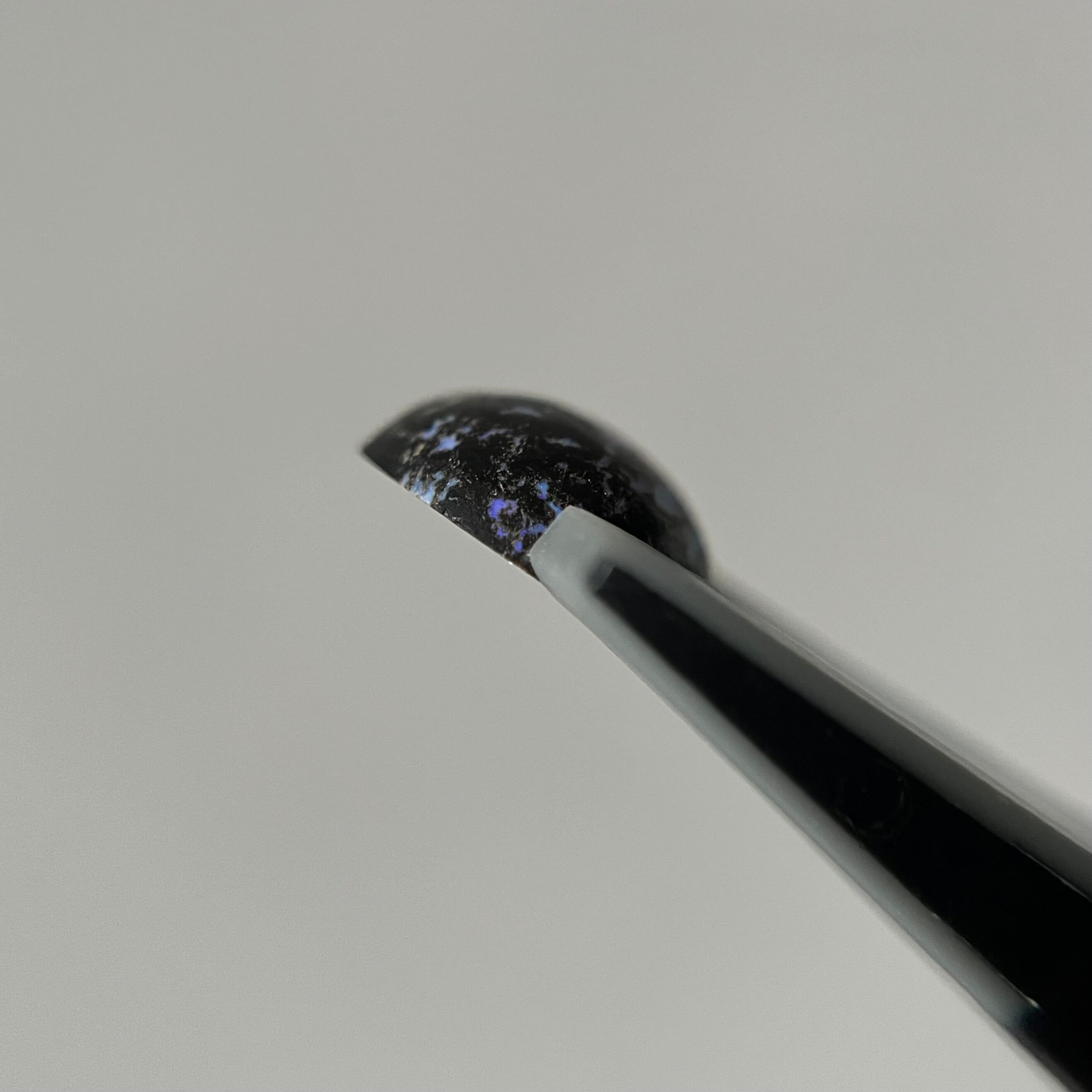 光をあてると奥から湧き上がるようにネオンカラーのオパールが輝き、黒との対比がスタイリッシュです。