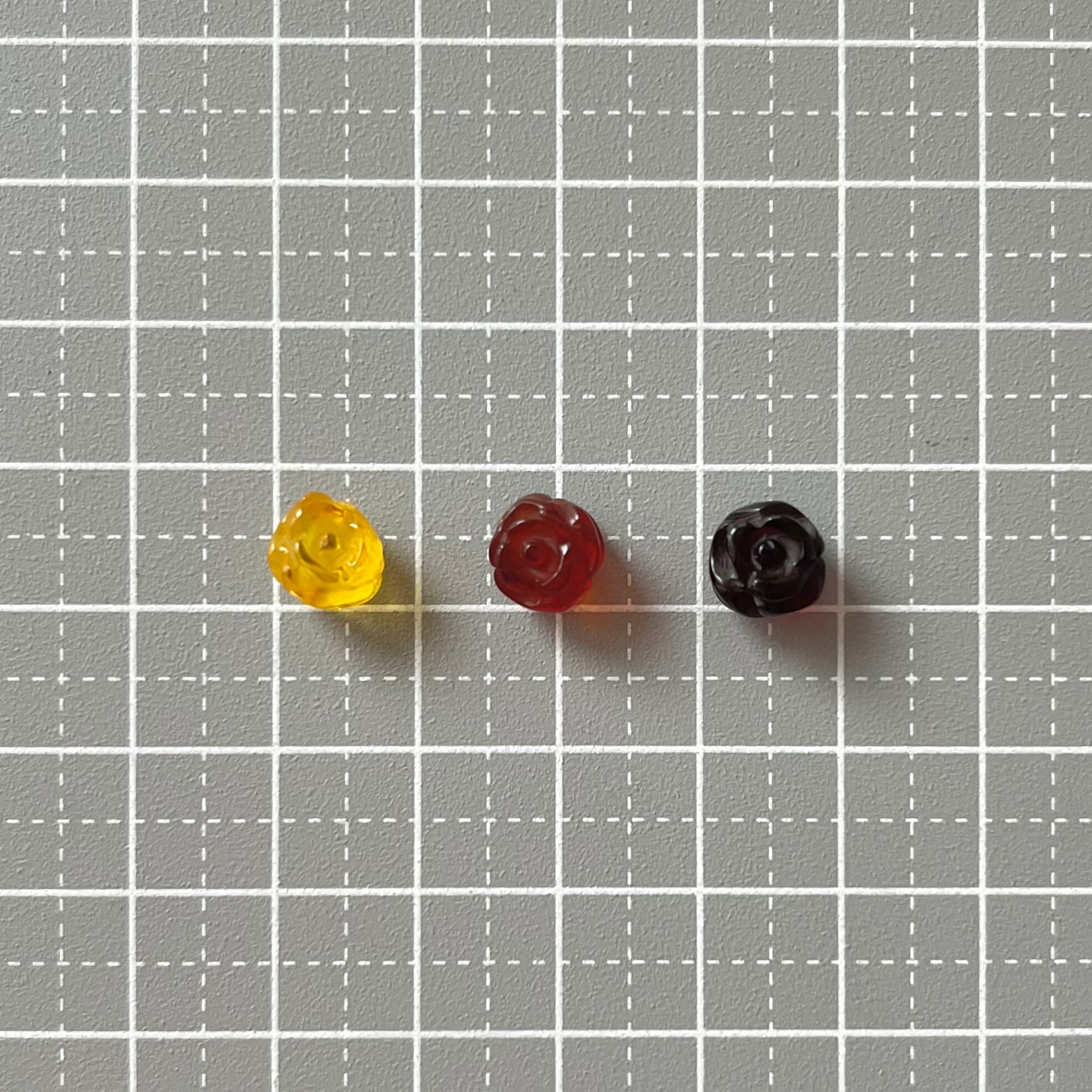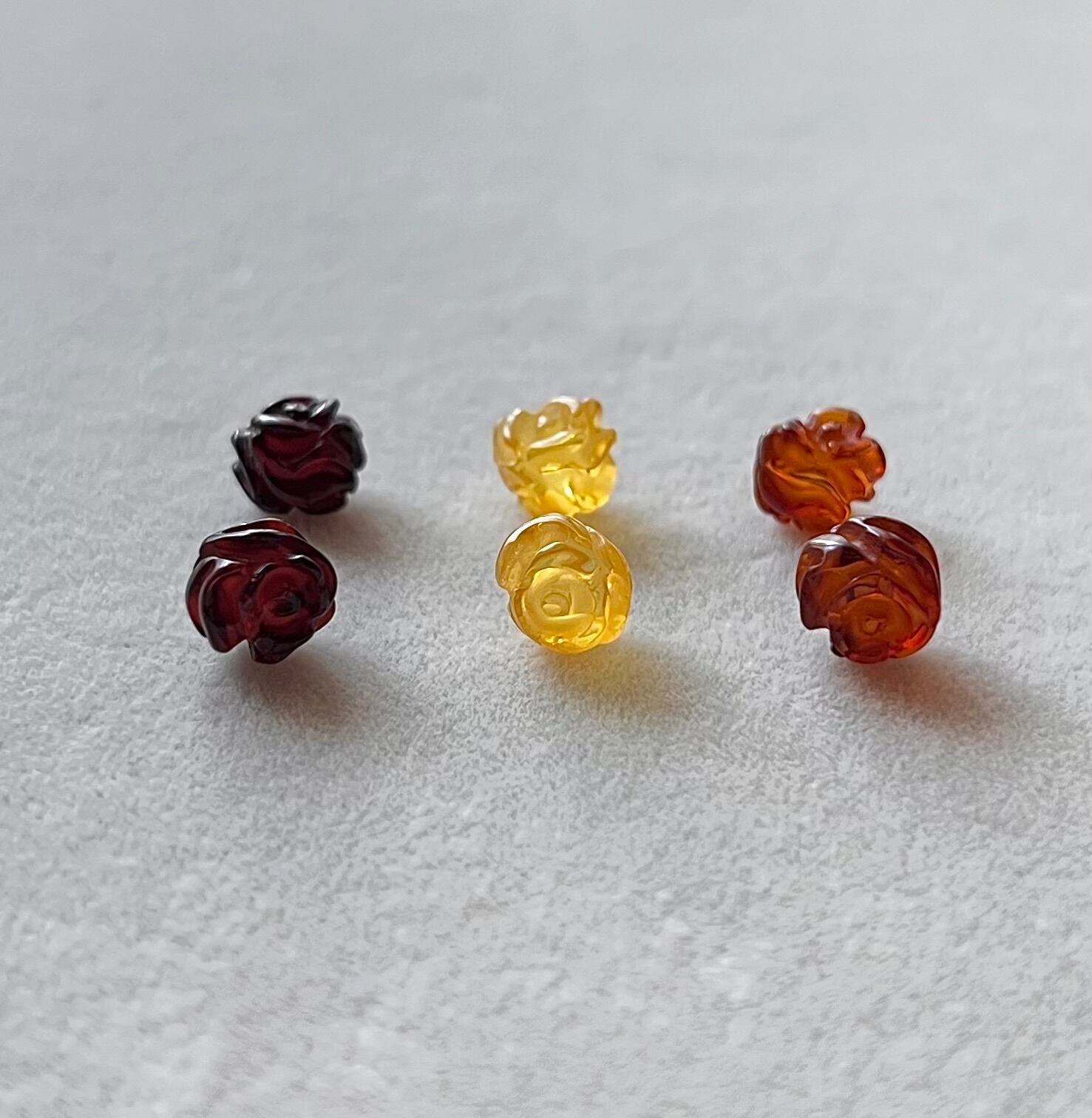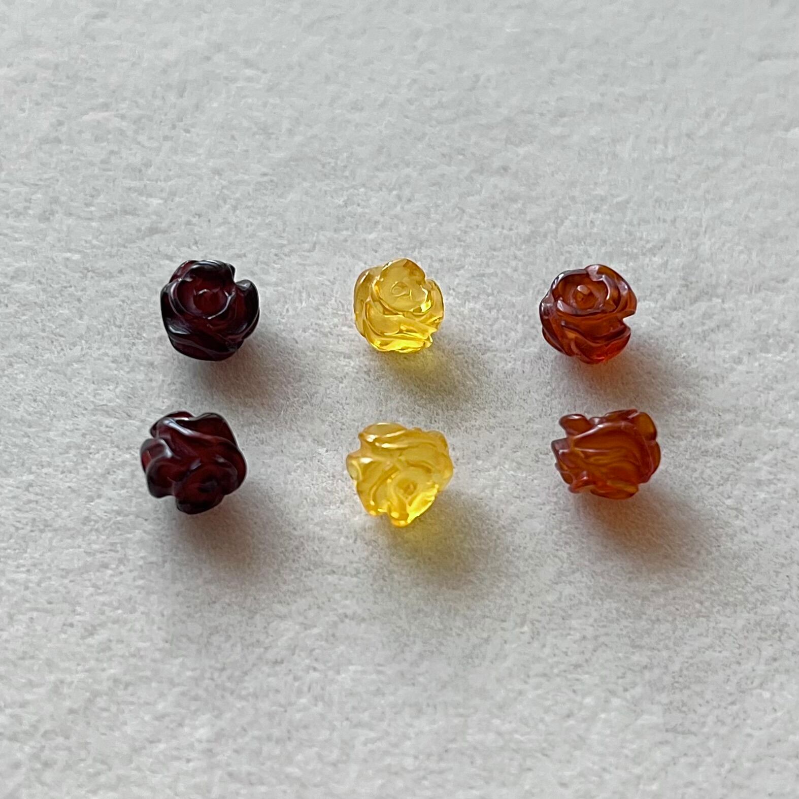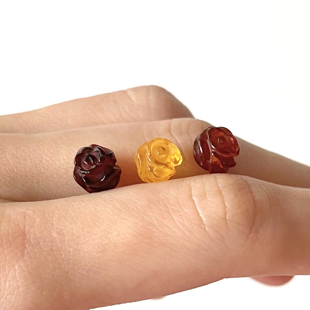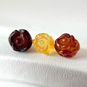 薔薇のカービングを施した3色のアンバー (琥珀) です。