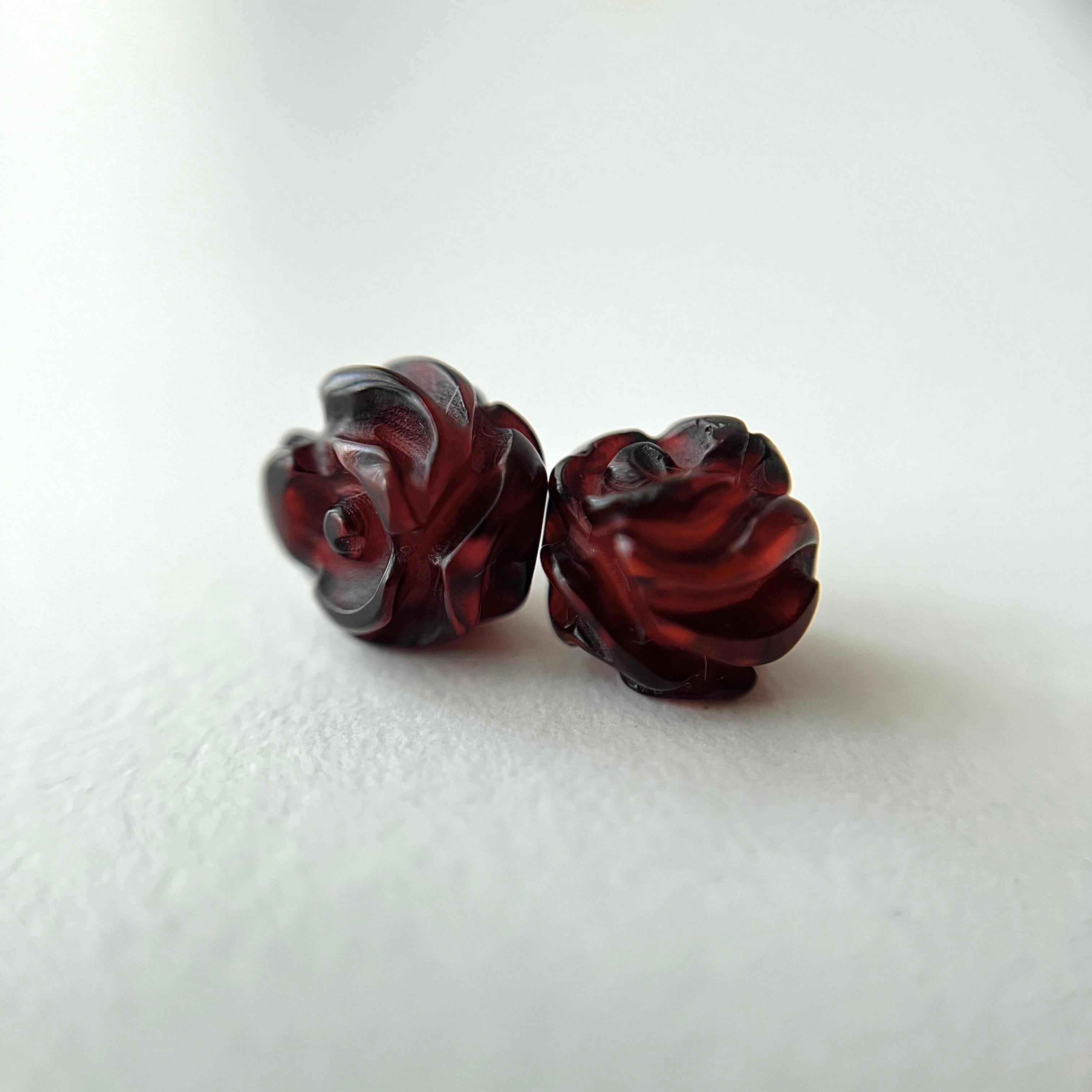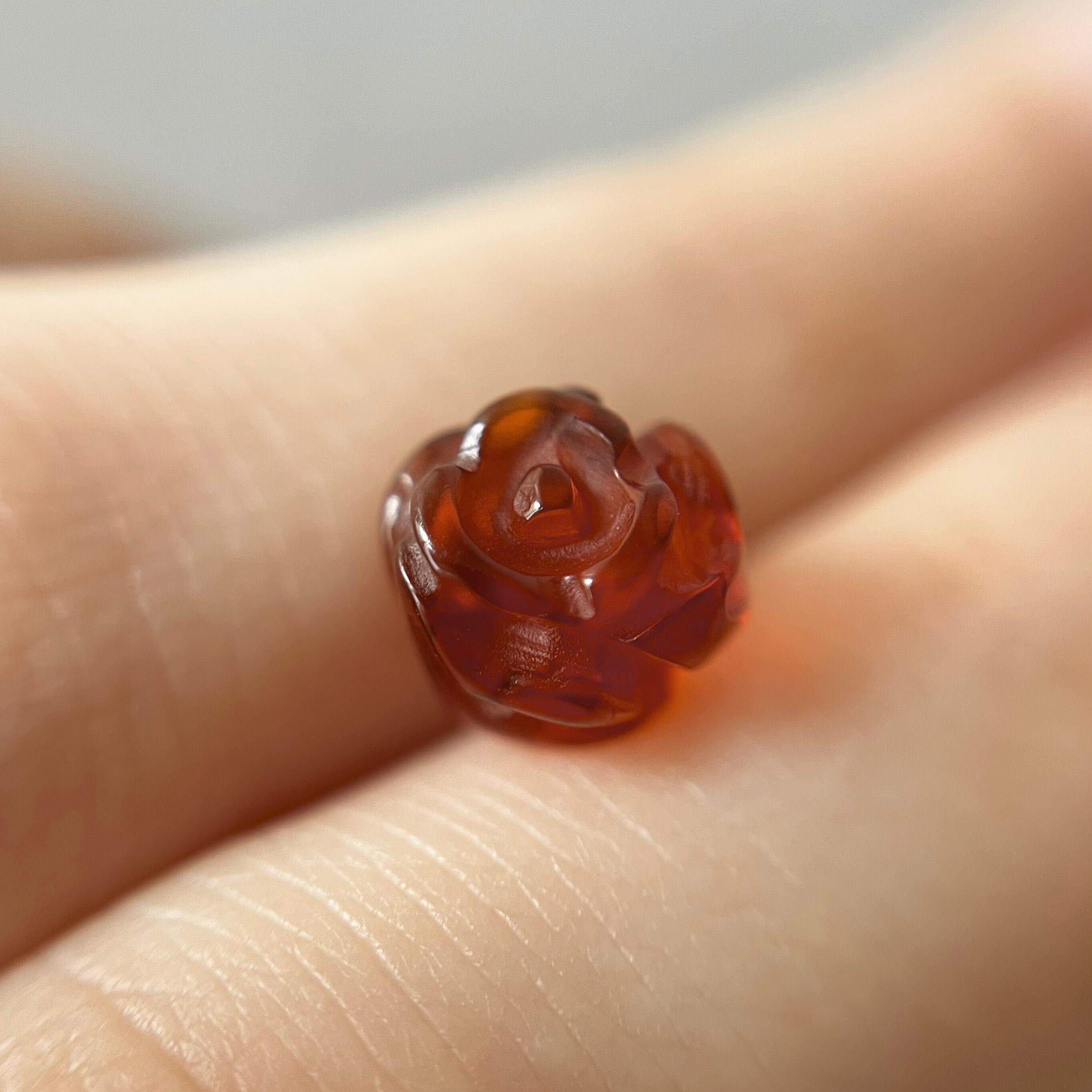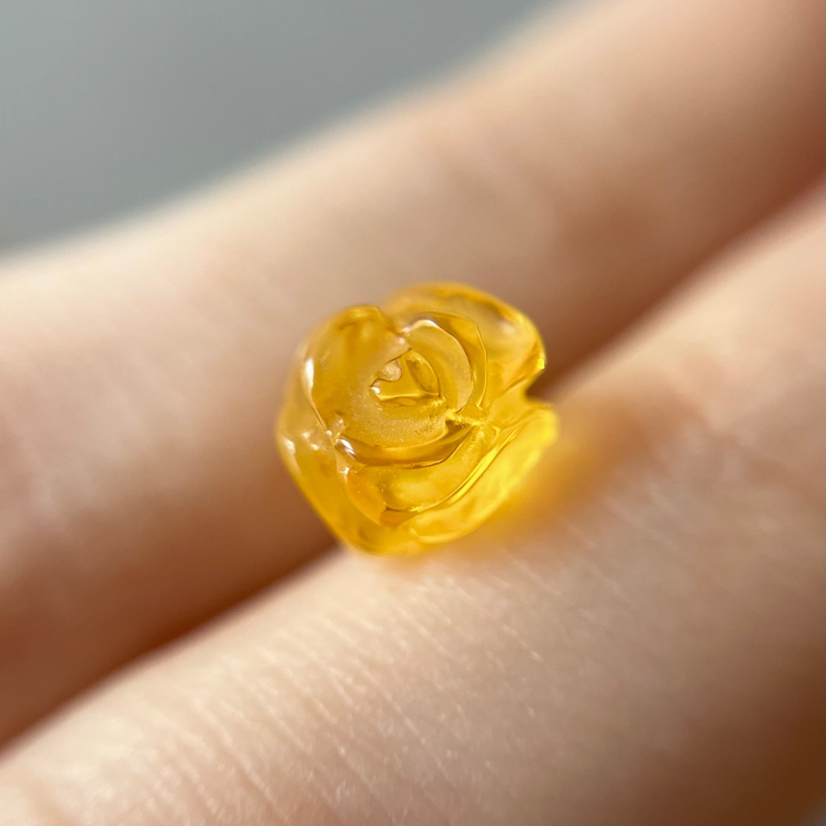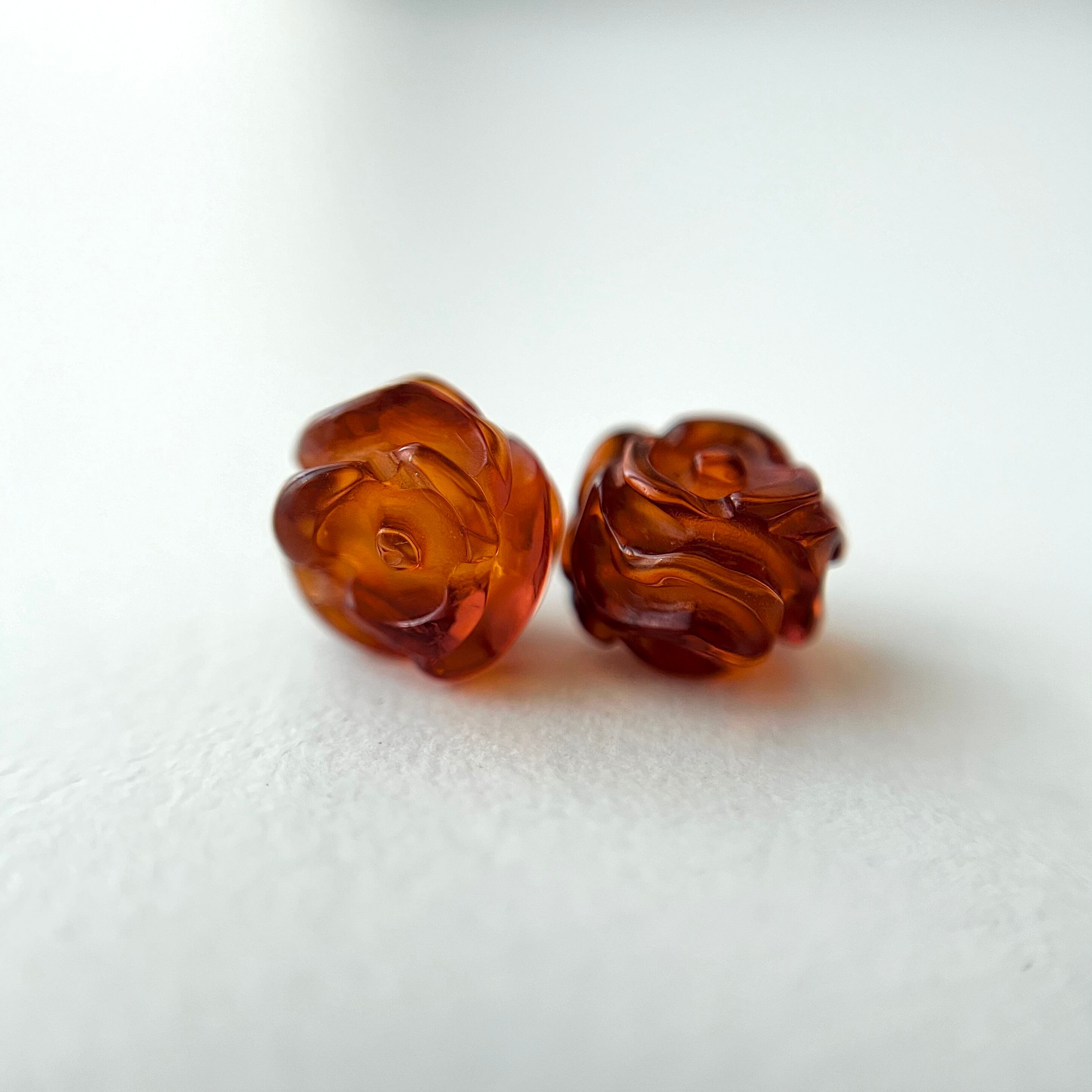 薔薇のカービングを施した3色のアンバー (琥珀) です。